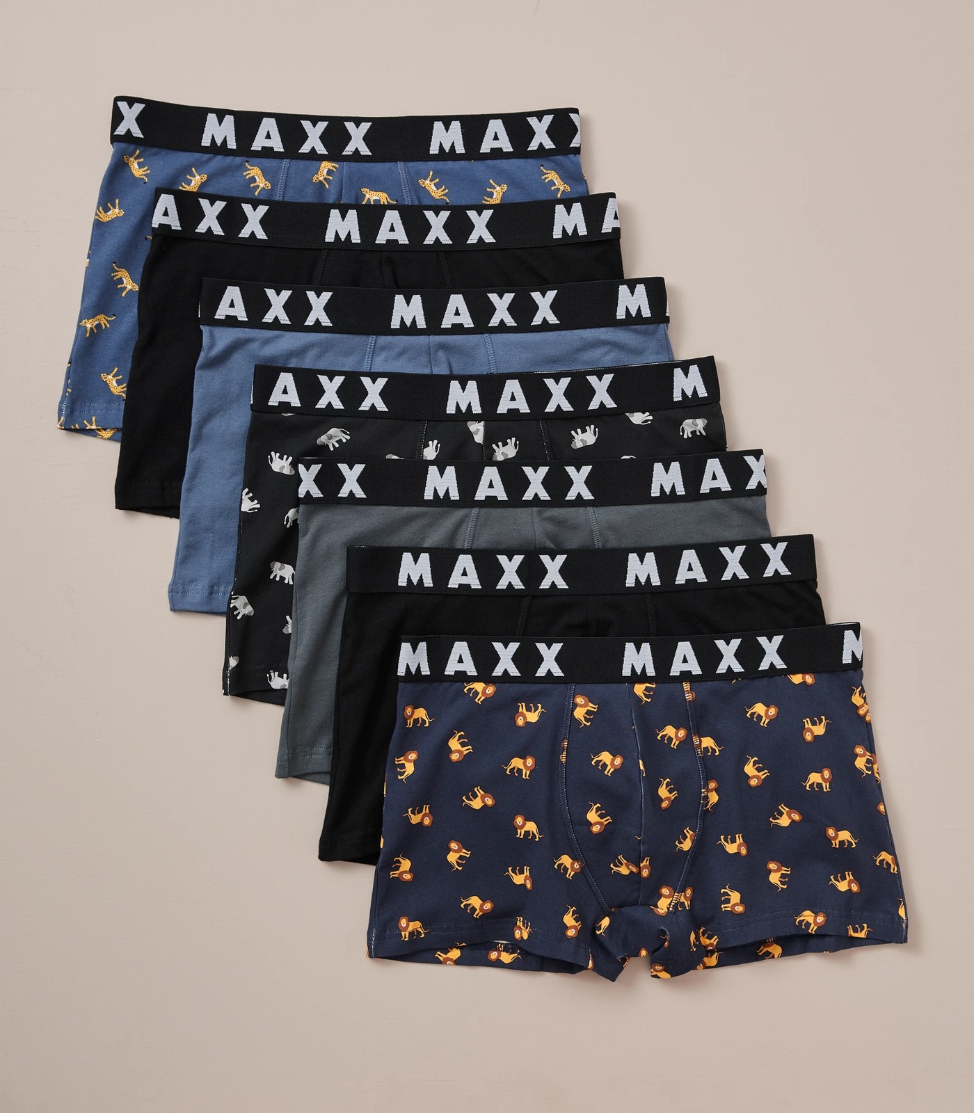 One pair for each day of the week, the Maxx 7 Pack Trunks offers great value for money! These mens' trunks are made from stretch cotton/elastane with a soft touch waistband and double layered pouch for a great fit and feel.