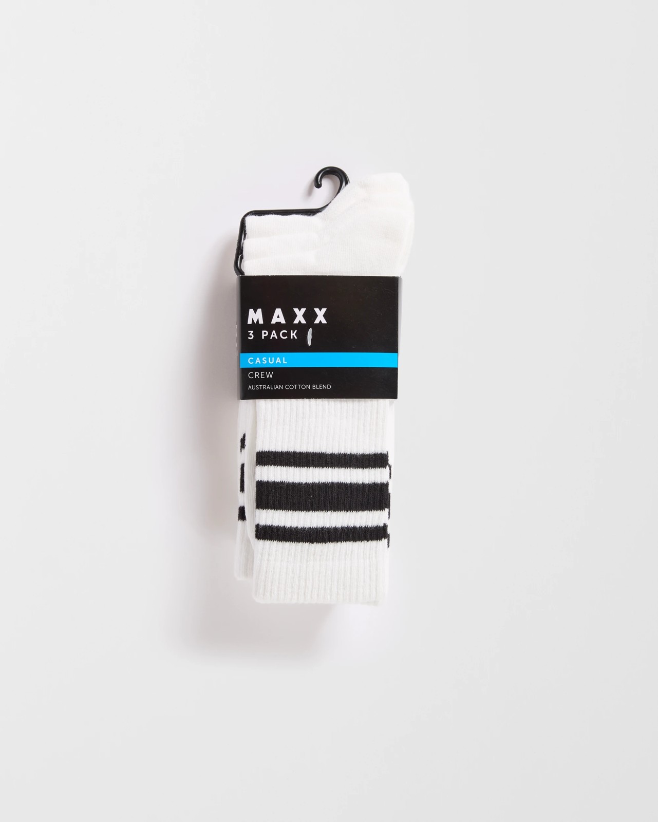 Maxx Australian Cotton Blend 3 Pack Casual Rib Socks - White