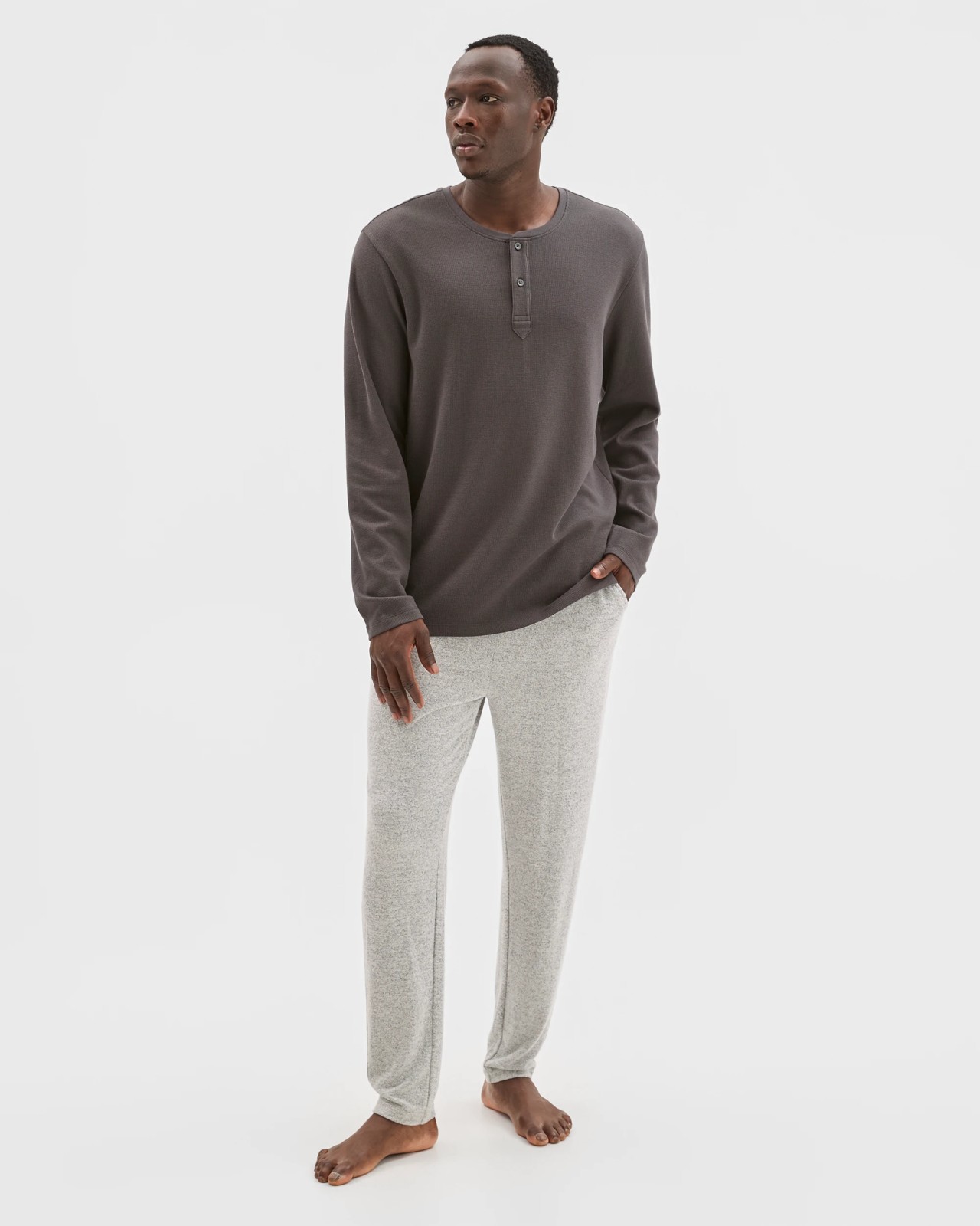 Maxx Australian Cotton Blend Waffle Henley Sleep Top - Black Oyster