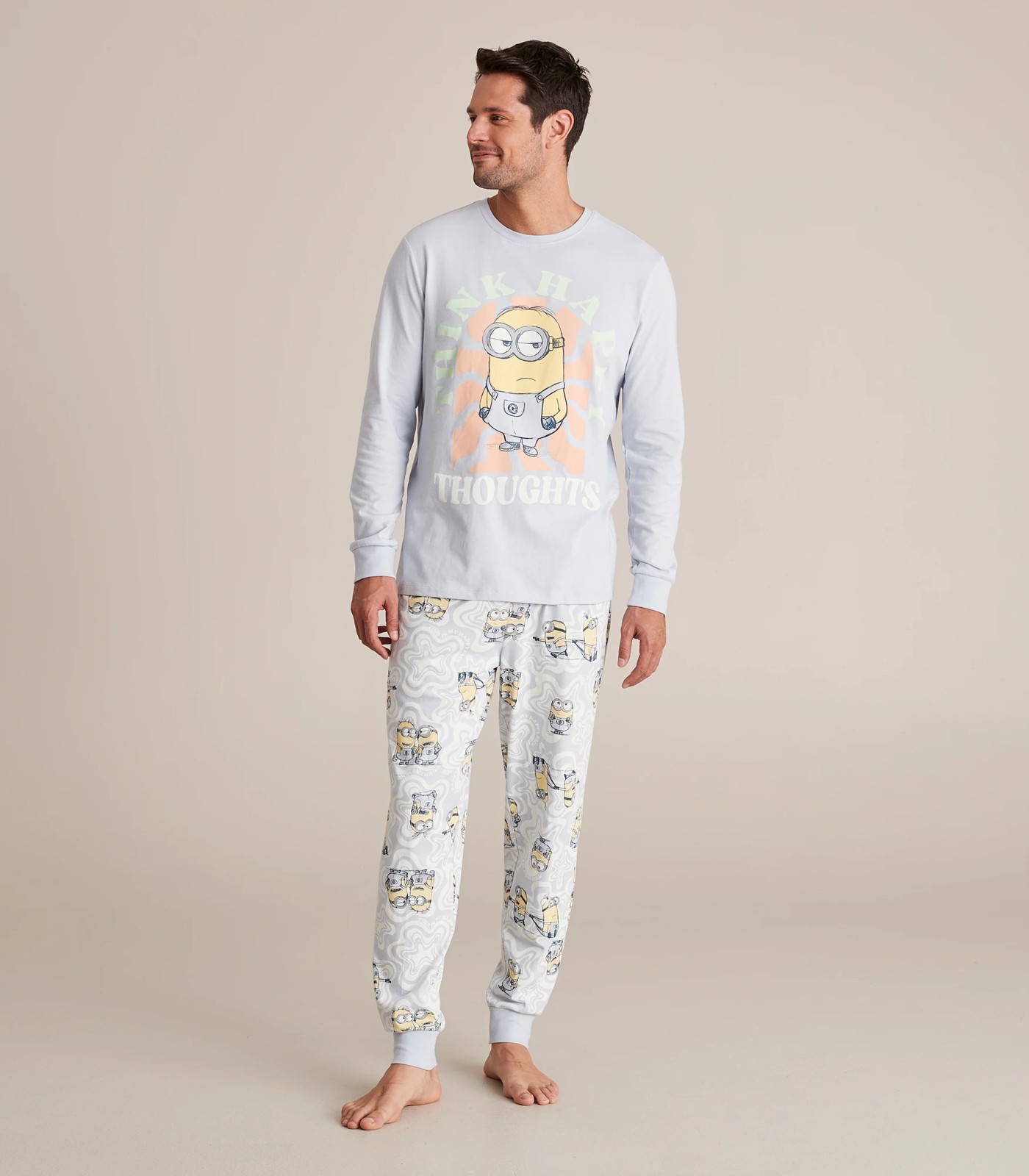 Collect the matching family set, with the blue Mens Family Matching Minions Cotton Pyjama Set, featuring a long sleeve top with large print to chest, matching all over print pants and crafted from soft cotton for all night comfort.