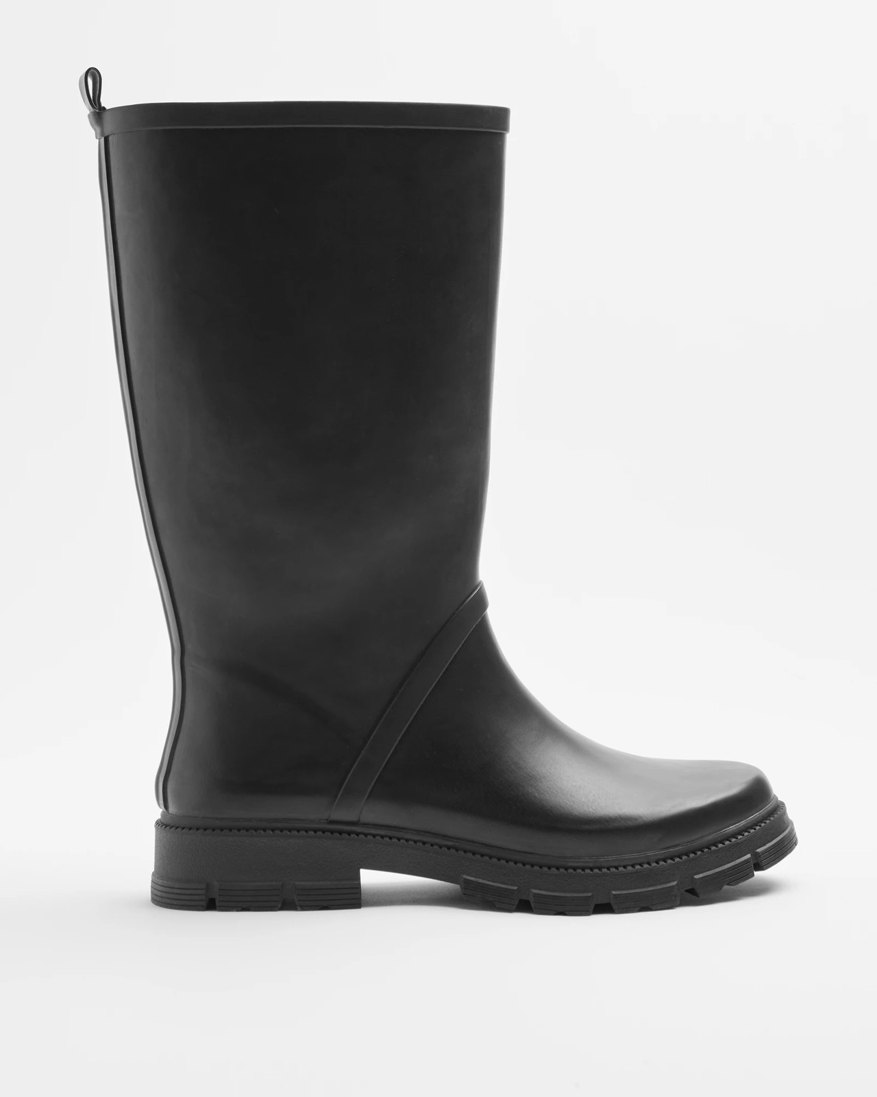 Step into comfort and style with the Mens Gumboots - Bennett. Perfect for rainy days, these boots feature a sleek synthetic upper and a closed round toe that keeps your feet dry. The knee-high design adds extra protection, while the padded footbed ensures comfort on every adventure. With a back pull tab for easy wear and a cleated sole for superior grip, this pair is your rainy day companion.