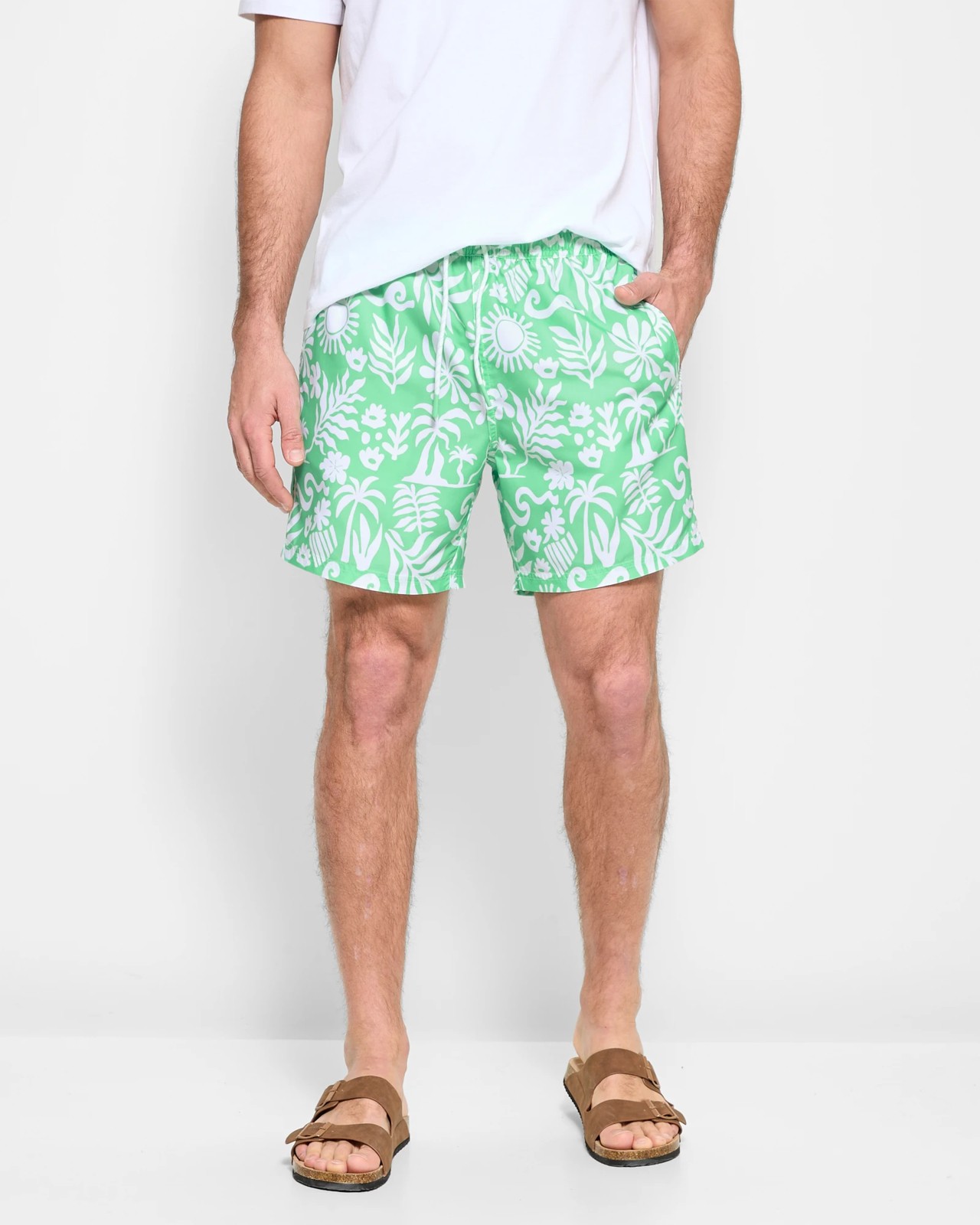 Experience unmatched comfort and style with our Men's Mini-Me Volley Shorts. Perfect for a day at the beach or a casual outing, these shorts provide a relaxed fit thanks to their elastic waistband and adjustable drawstring. The vibrant green floral print adds a touch of fun, while the microfibre fabric ensures a soft touch against your skin. With convenient side pockets and a straight hemline, these shorts are designed for both practical use and a trendy look. Add these versatile shorts to your wardrobe today and enjoy summer in style!