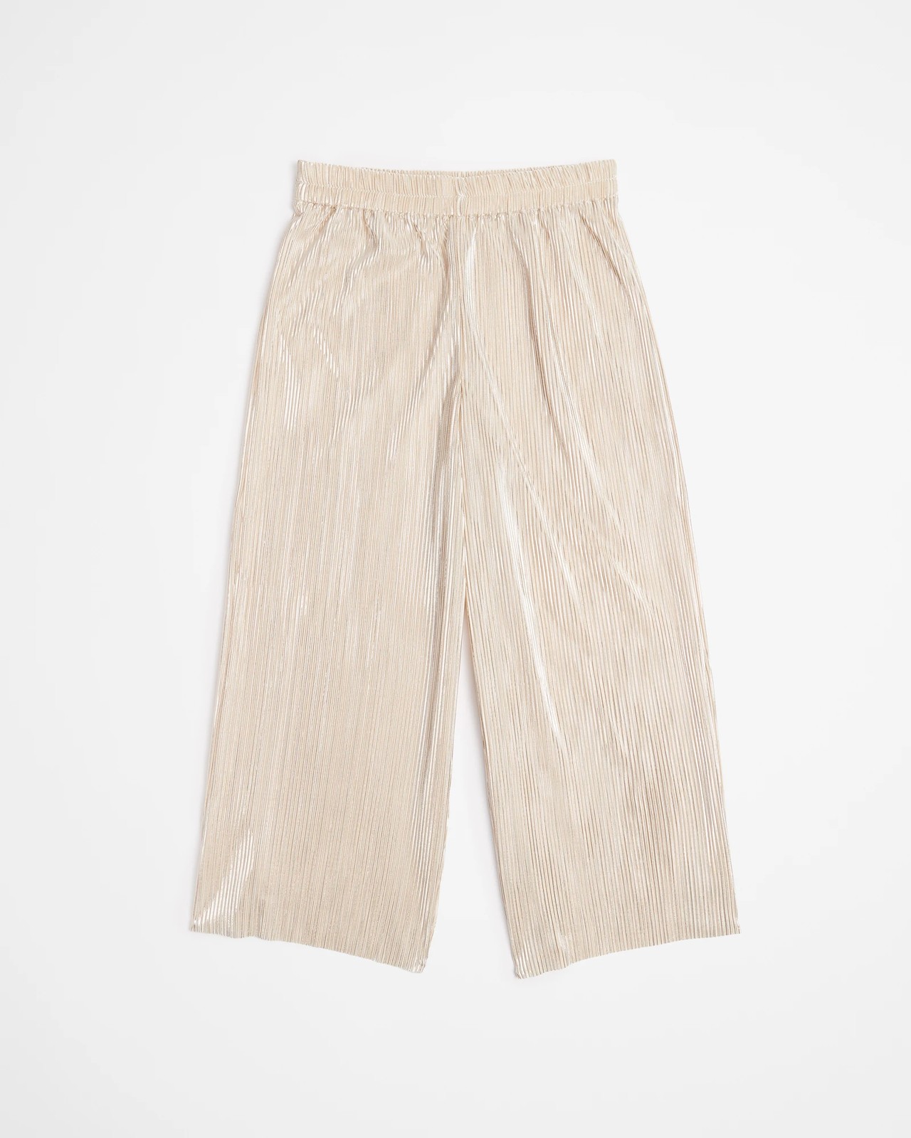 Experience the luxury of these Metallic Pleat Pants from our new collection. Crafted from a polyester pleated material, they feature a regular fit with an elastic waistband for added comfort. The wide leg design is finished off with a shimmering gold metallic look that will make sure all eyes are on the wearer. Perfect for any occasion, these Metallic Pleat Pants will be sure to keep up with all of life’s adventures.