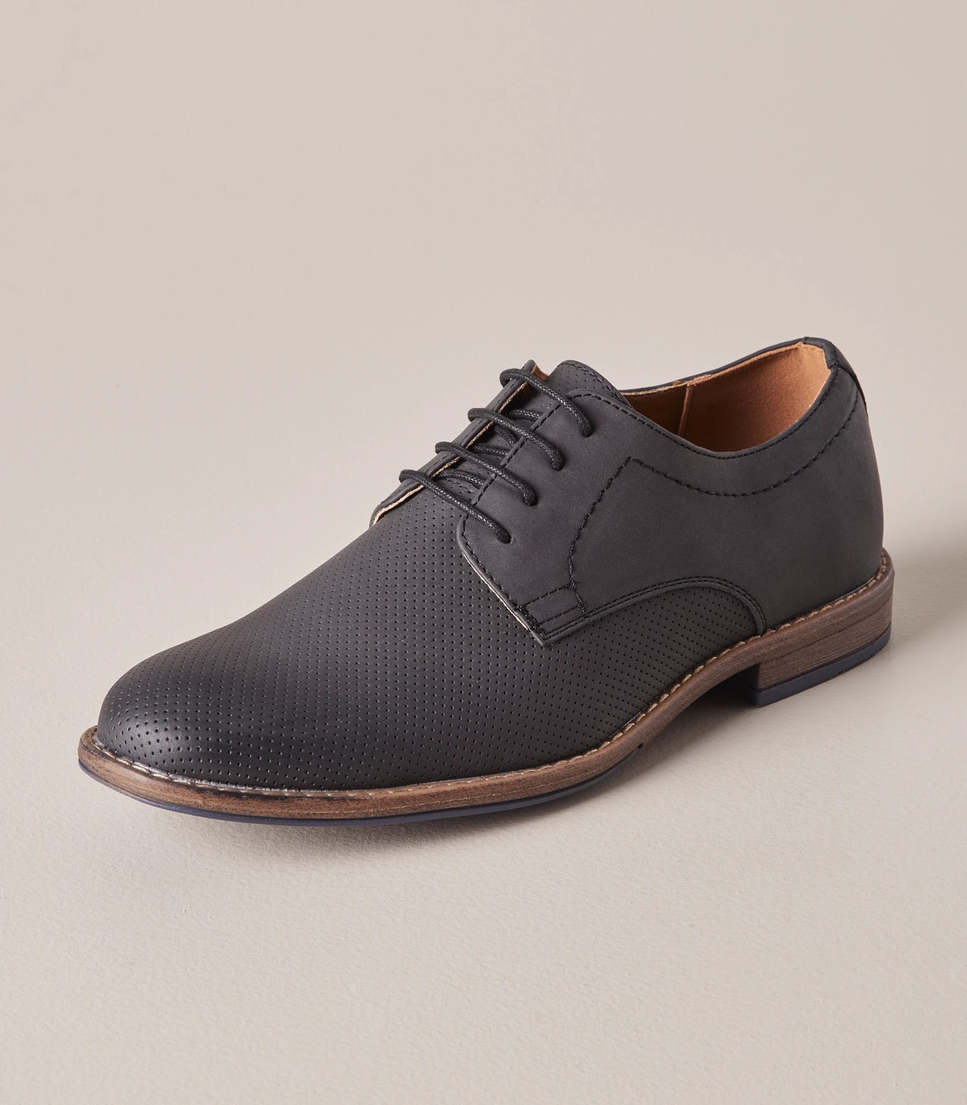 A dressy shoe that is great for dressing up your outfit, the Michael pin hole lace up shoes has a pin hole design on the front, an all over leather look outer, cushioned inner sole and lace up front.