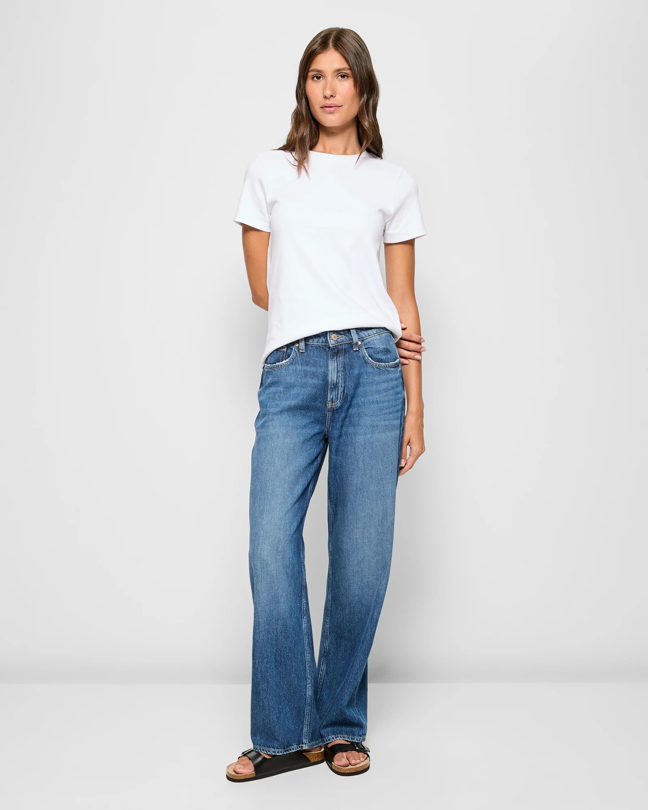 Experience the perfect blend of comfort and style with the Imogen loose fit denim jeans, made from a soft cotton and lyocell mix. These jeans feature a comfortable mid-rise waist and a structured waistband with belt loops, making it easy to customise your fit. The wide leg and full length design add a touch of classic fashion, while the five-pocket layout offers practicality. With a sleek DENIM embossed button and zip fly closure, the Imogen jeans are perfect for any casual day out. Add these to your wardrobe for a chic and relaxed look!