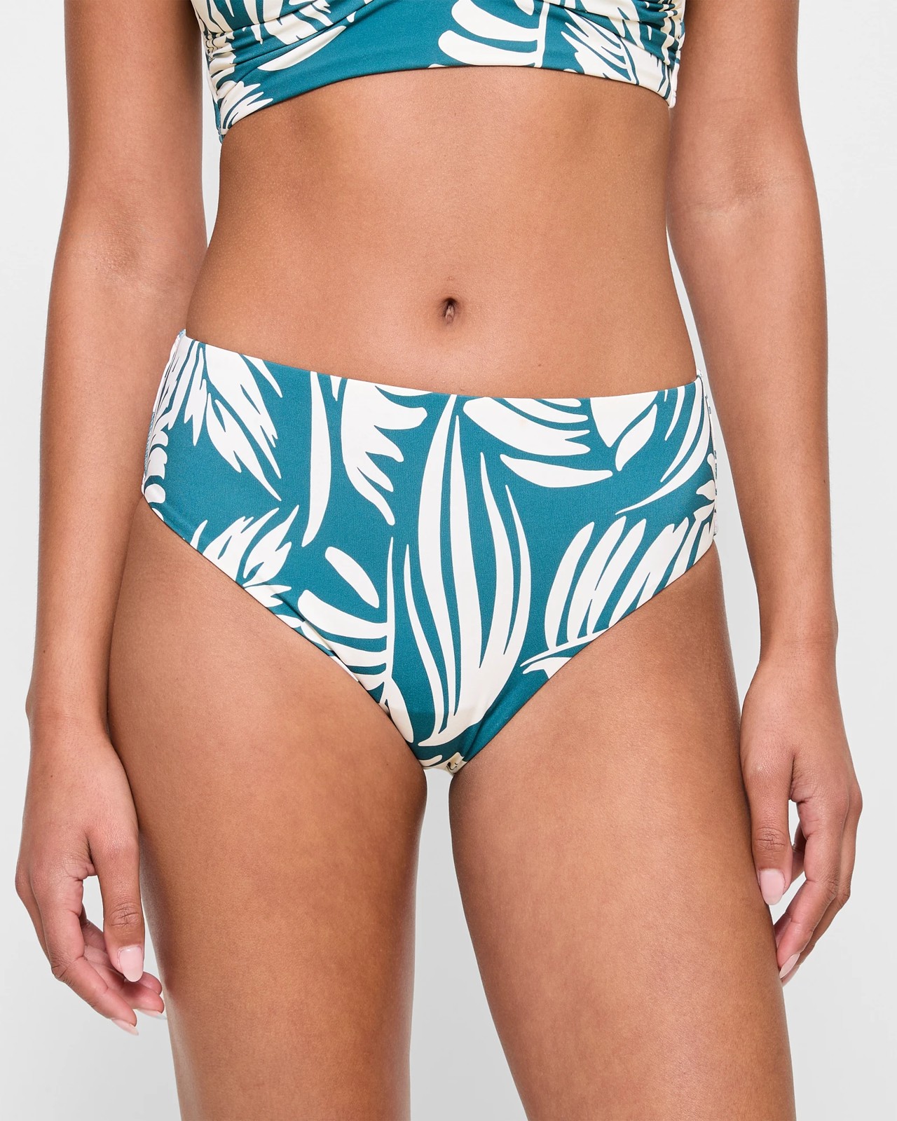 Jump into your beach adventures with our Midi Bikini Swim Bottoms. Designed for both aesthetic appeal and comfort, these swim bottoms feature a stylish bikini cut with high cut legs and full back coverage. The soft stretch elastane allows for easy movement, while the LYCRA® Xtra Life™ fibre ensures the fabric withstands chlorine and sunscreen exposure. Our eye-catching spliced palm print adds a tropical touch, and the hidden thin elastic waistband offers a secure fit. Complete your beachwear ensemble by pairing it with our matching swim top, available separately. Make waves this summer with these chic and functional swim bottoms!
