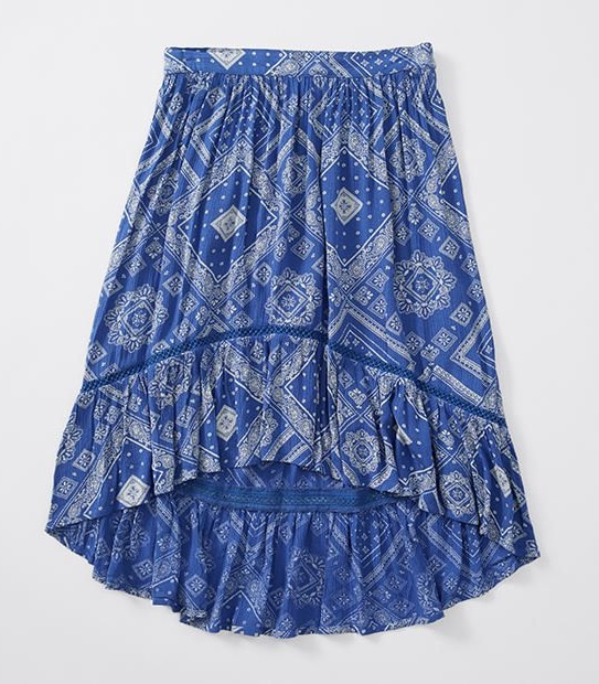 She is sure to love this stunning high-low hem midi skirt. Featuring a partial elastic waistband for comfort and high-low ruffle hem with lace detail for added style, this will be one of her favourites.