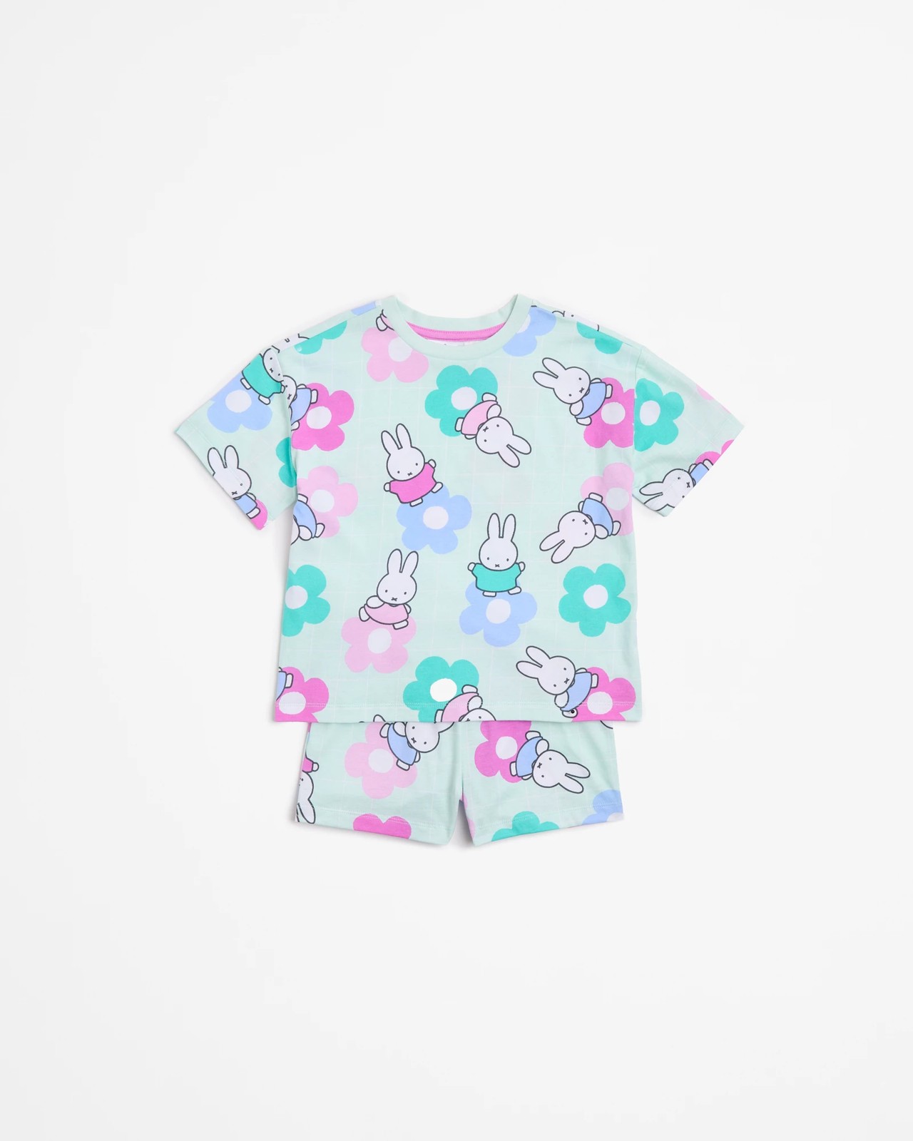 Transform your little one’s bedtime routine with the delightful Miffy Cotton Rib Pyjama Set in green. This enchanting two-piece pyjama set offers both comfort and style, featuring a ribbed crew neck top with an all-over Miffy design and short sleeves. The matching shorts come with an elastic waistband, ensuring a snug and secure fit all night long. Perfect for young Miffy admirers, this set promises to make their nights filled with cosy comfort. Don’t hesitate, brighten up their sleepwear collection today!