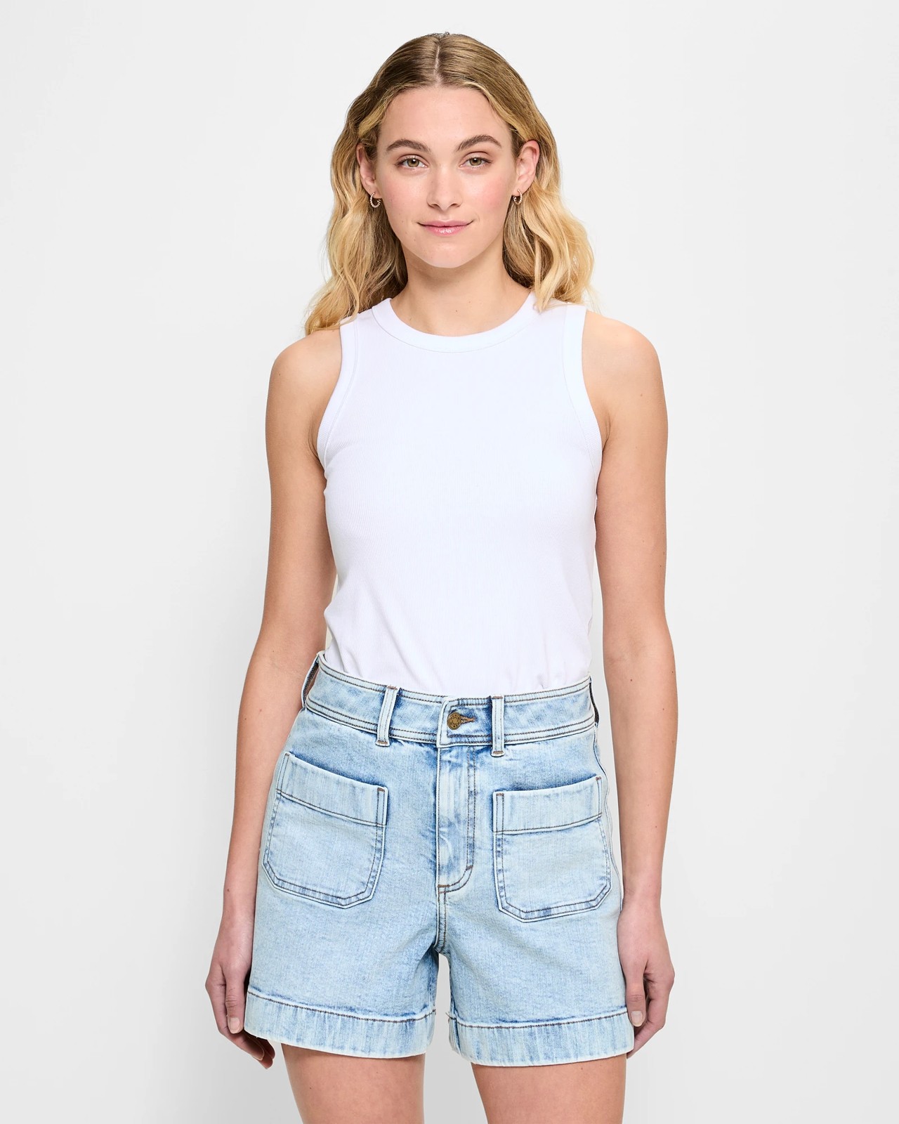 Meet the Mila Denim Shorts, your new go-to for effortless style and comfort. Designed with a cotton-rich blend and a touch of elastane, these shorts promise comfort throughout the day. They showcase a beautiful island blue shade and a thick waistband with belt loops for a secure fit. The front button and zip fly add a classic touch, while the front and back pockets ensure practical storage. Slip into these shorts to experience a blend of casual style and comfort.