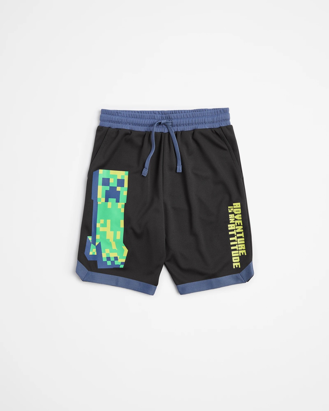 These stylish and comfortable Minecraft Basketball Shorts are perfect for boys who want to show off their gaming pride. Made of polyester, these shorts feature a regular fit with an elastic waistband and drawcord for a great fit. The Minecraft print down both thighs adds just the right touch of flair. Side pockets and a mermaid hemline with trim complete the look. Whether playing sports or lounging around, these shorts are sure to be a hit!