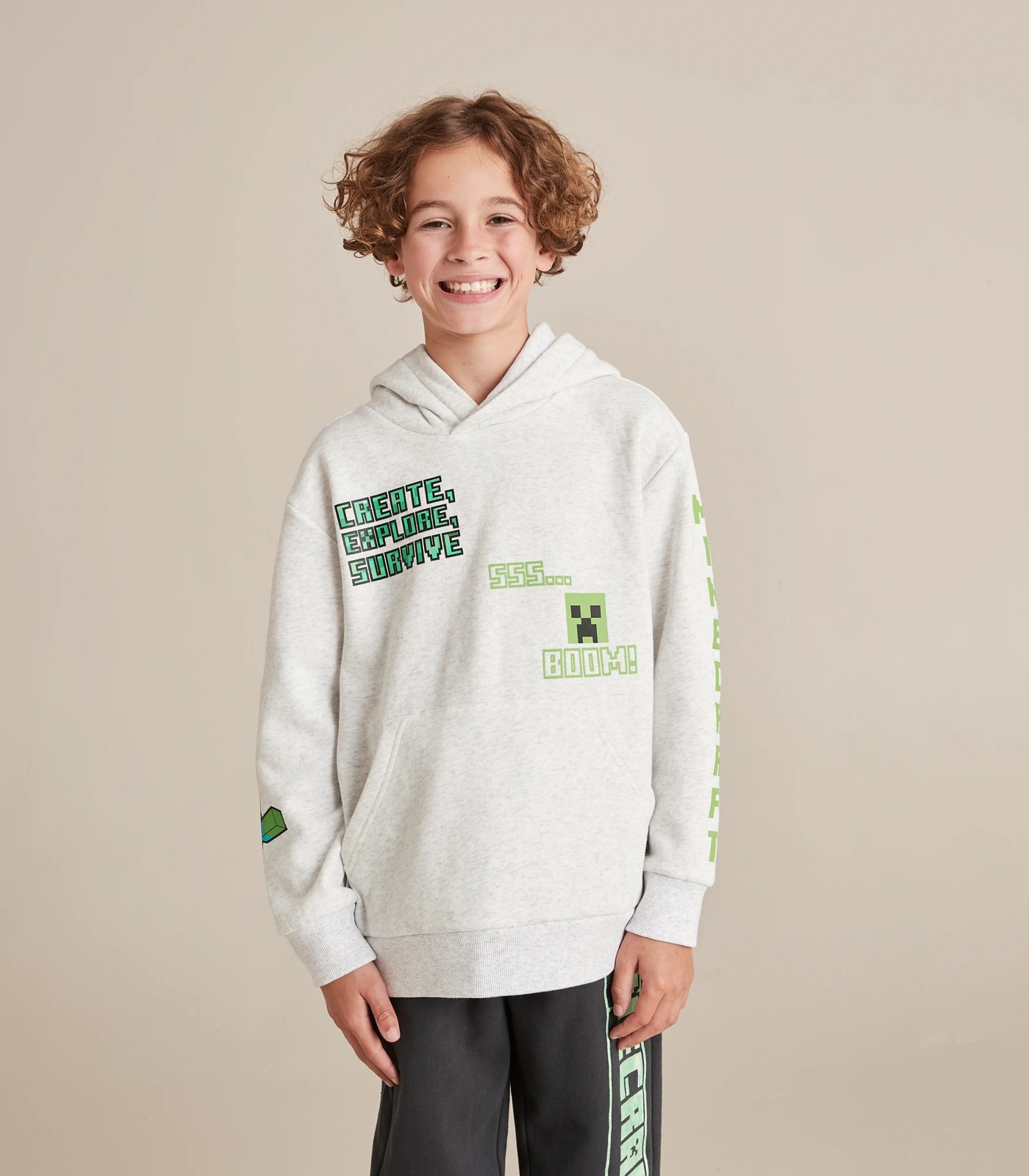 A great addition to his wardrobe, gaming fans will love the grey marle Minecraft Hoodie, featuring a placement print to chest, a front kanga pocket and fleece lining for extra warmth and comfort.