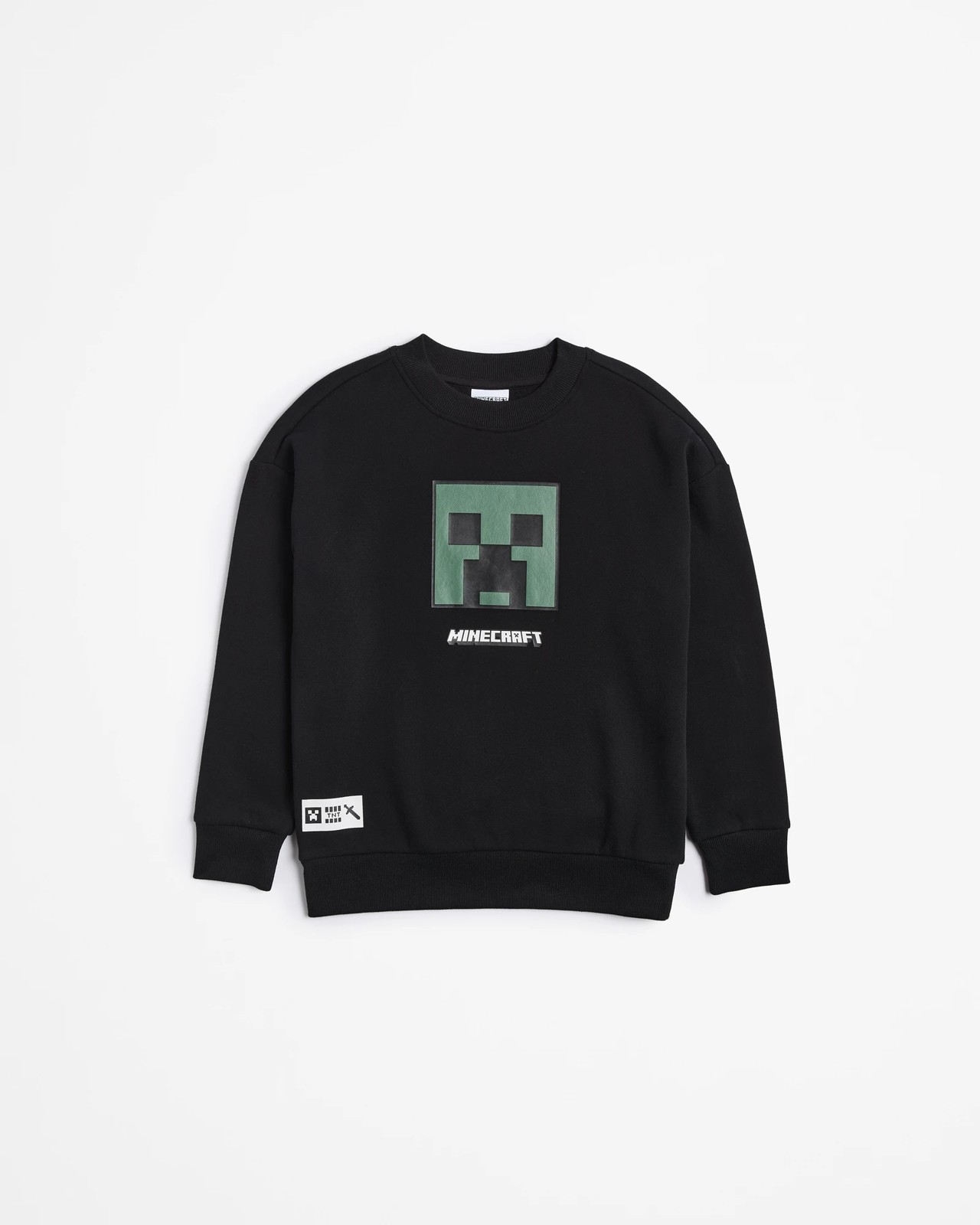 Step into the world of Minecraft with this comfy oversize jumper. Ideal for any young fan, it features a striking Creeper print on the front that makes it a must-have. Made from a soft cotton-poly blend, the jumper promises warmth and comfort with its fleece lining, while the ribbed cuffs and hem ensure a snug fit. Perfect for cooler days, this jumper allows your little one to showcase their love of Minecraft in style whether they're at home or out with friends. Grab this fantastic piece and make their Minecraft adventures even cosier.