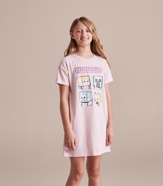She'll sleep blissfully in this pink Minecraft Sleep Nightie featuring crew neck, short sleeves and straight hem.