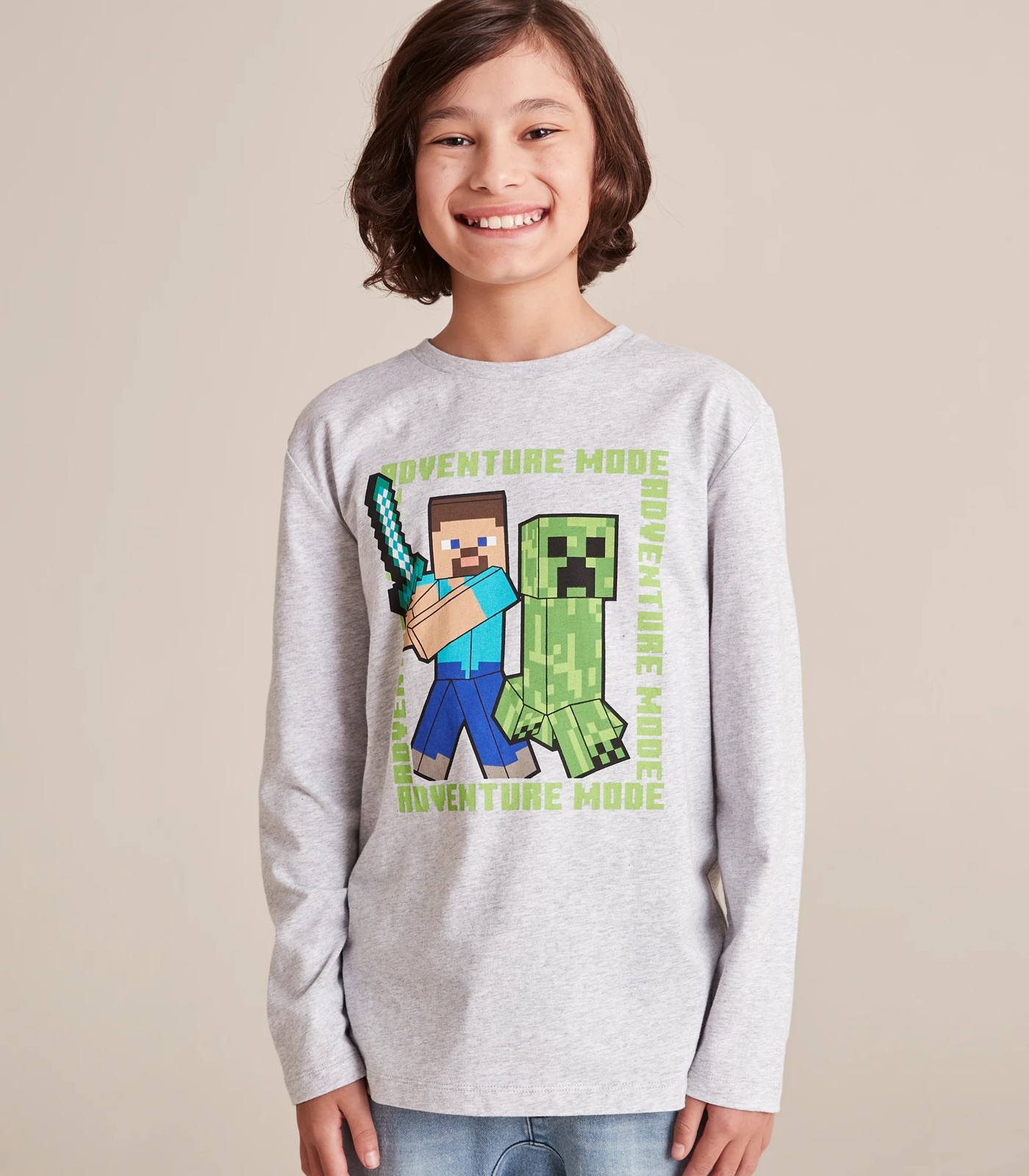 Gaming fans will love the grey marle Minecraft Top, featuring a ribbed crew neck, long sleeves and large MInecraft Creeper print to chest.