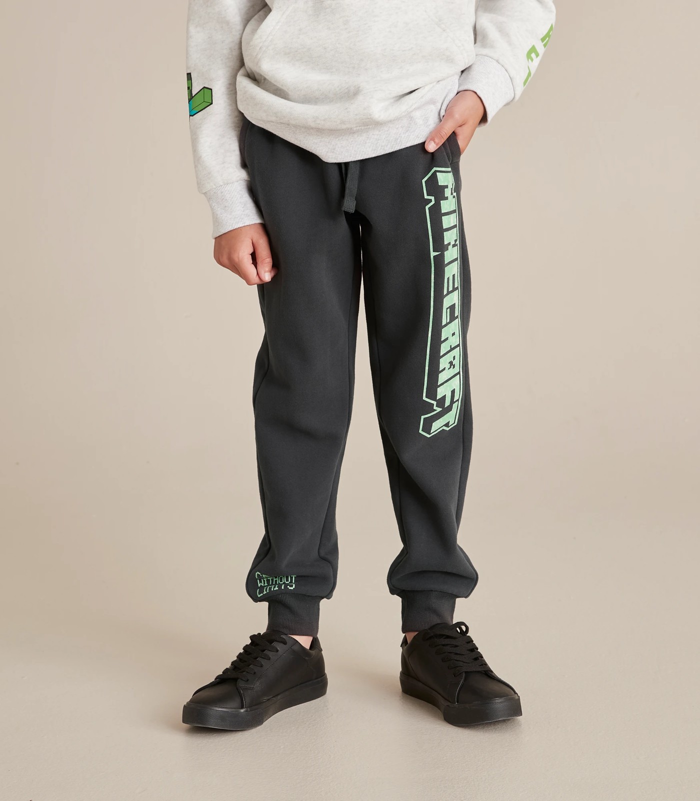 Gaming fans will love the charcoal grey Minecraft Trackpants, featuring a ribbed elastic waistband with drawcord, large Minecraft print down the leg and fleece lining for extra comfort and warmth.