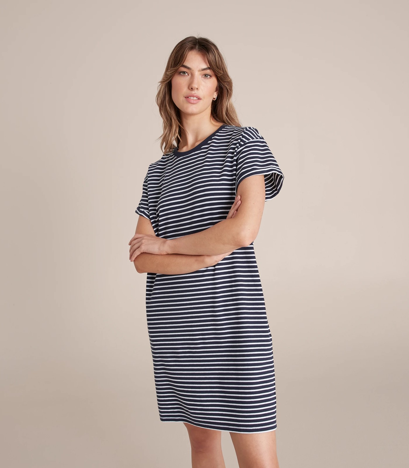 Great for everyday wear in the warmer months, the mini tee dress is made from a breathable stretch BCI™ cotton material, has short sleeves and a mini length for easy movement and comfort.