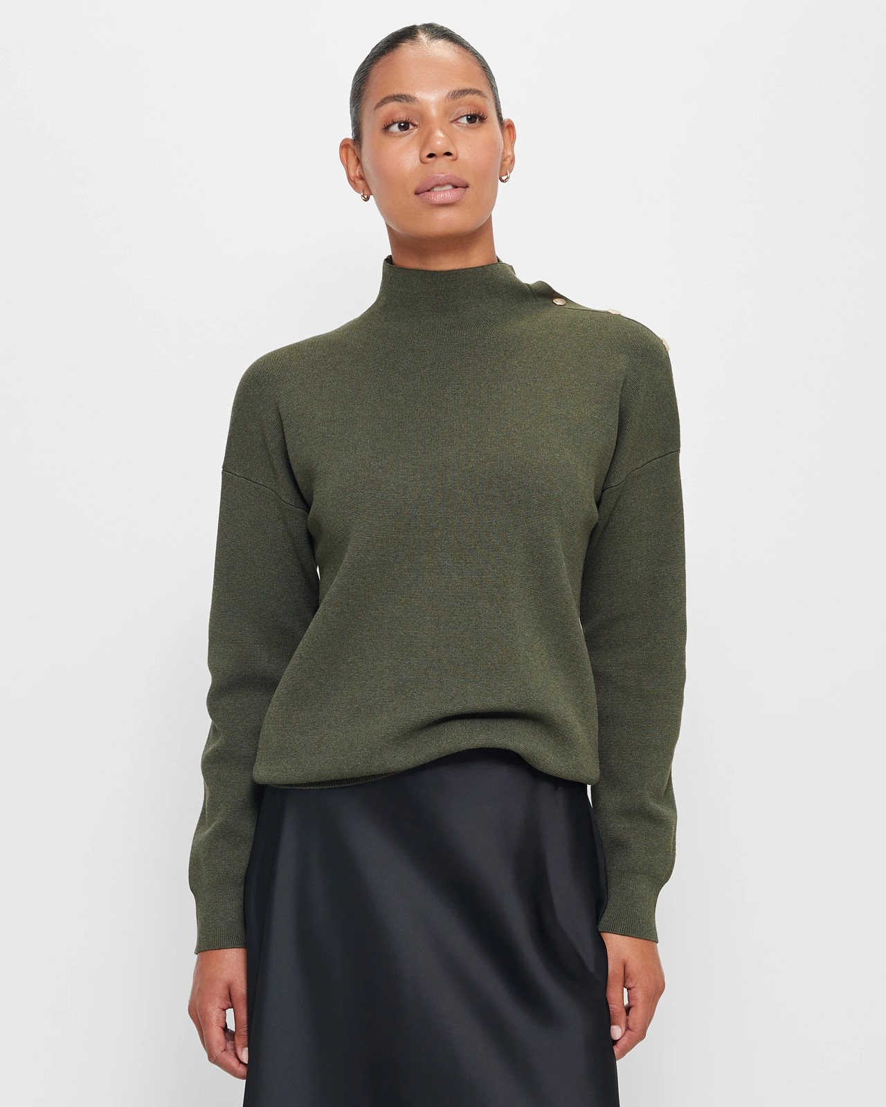 Introducing our stylish Mock Neck Button Detail Jumper from Preview. Crafted from a luxurious blend of viscose and nylon, this jumper offers a comfortable and flattering regular fit. Its all-over waffle knit design adds a touch of texture, making it a standout piece in your wardrobe. The round high mock neckline exudes elegance, while the gold button detail along one side of the neck adds a touch of sophistication. With long ribbed cuff sleeves and a ribbed straight hemline, this jumper is both stylish and cosy. Don't miss out on this must-have item. Shop now!