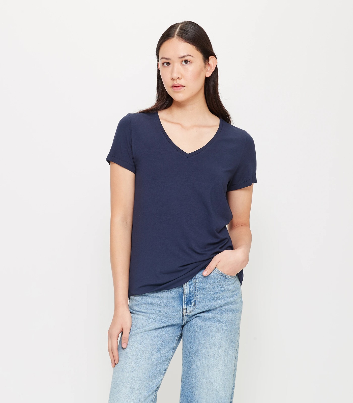 The perfect everyday wardrobe basic, the modal/elastane v-neck tee is great for layering, has a v-neckline and has stretch for comfort.