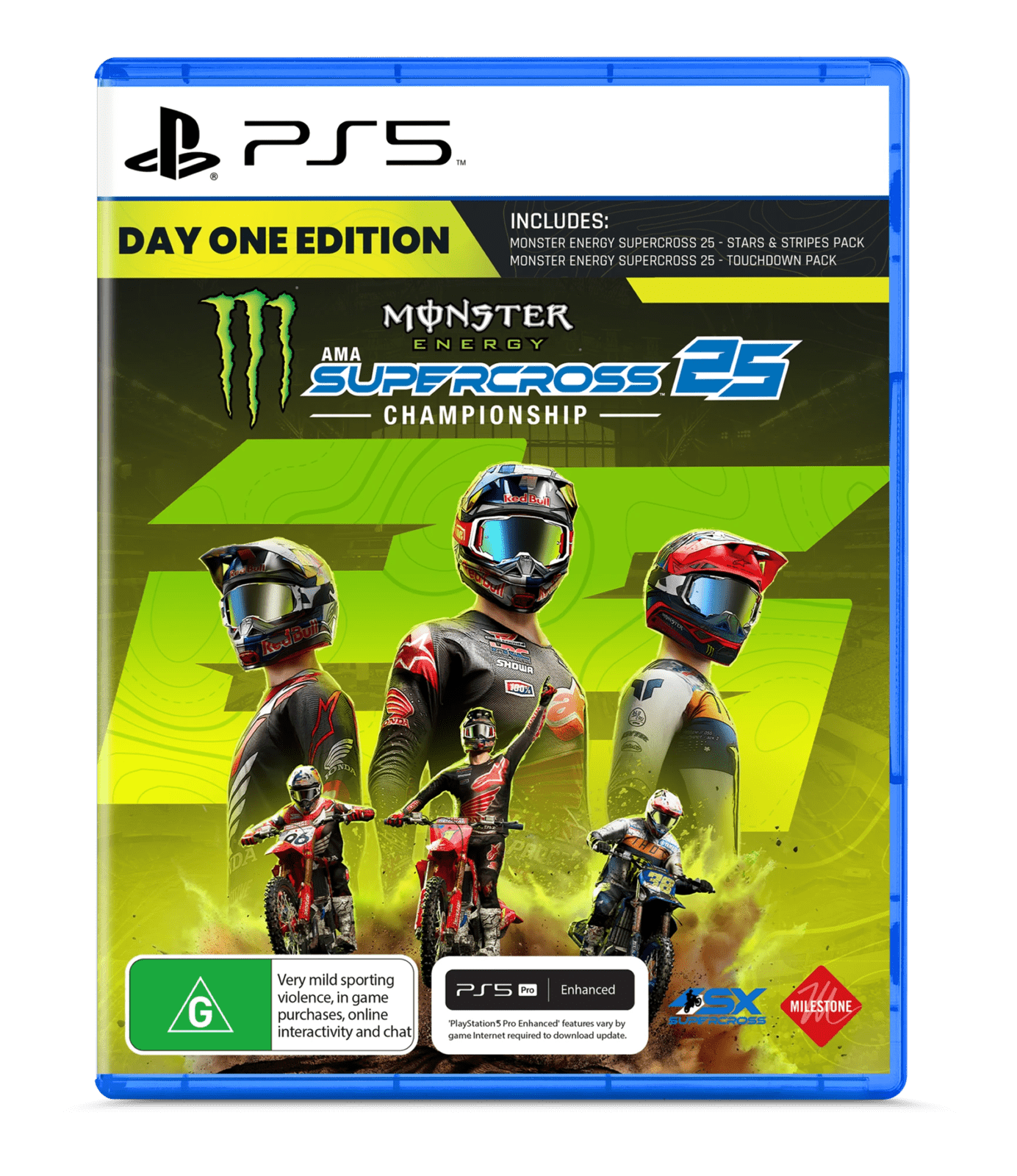 Get right into the action and the dirt! Thanks to Unreal Engine 5, Monster Energy Supercross 25 lets you feel every bump and turn, as you frantically race your field of opponents. Feel the intensity with reshaped ground and air physics, offering more realistic handling and full control over every jump, making each race feel true to life.