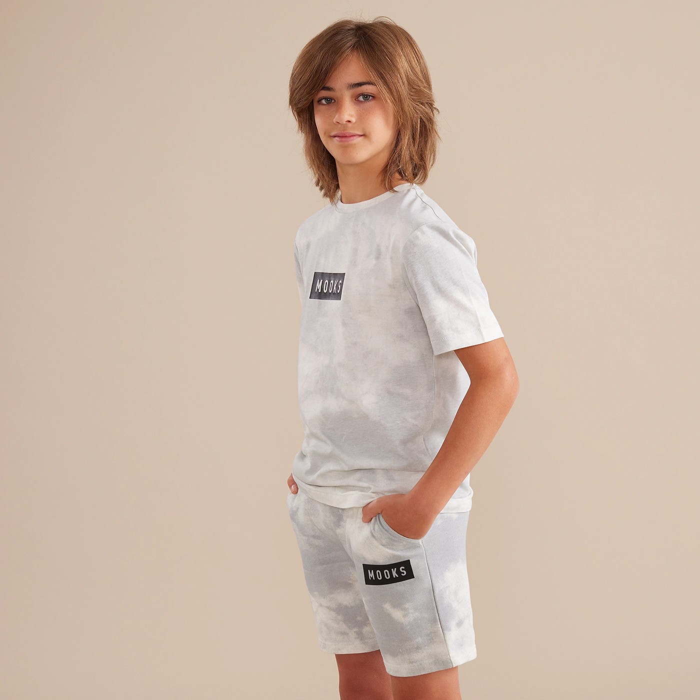 This Mooks Requisite short sleeve tee features a crew neckline, stack print on front chest. This style also features a all over acid wash effect print. This tee makes a for a great staple in his wardrobe and can be worn back with the Arrival sweat short