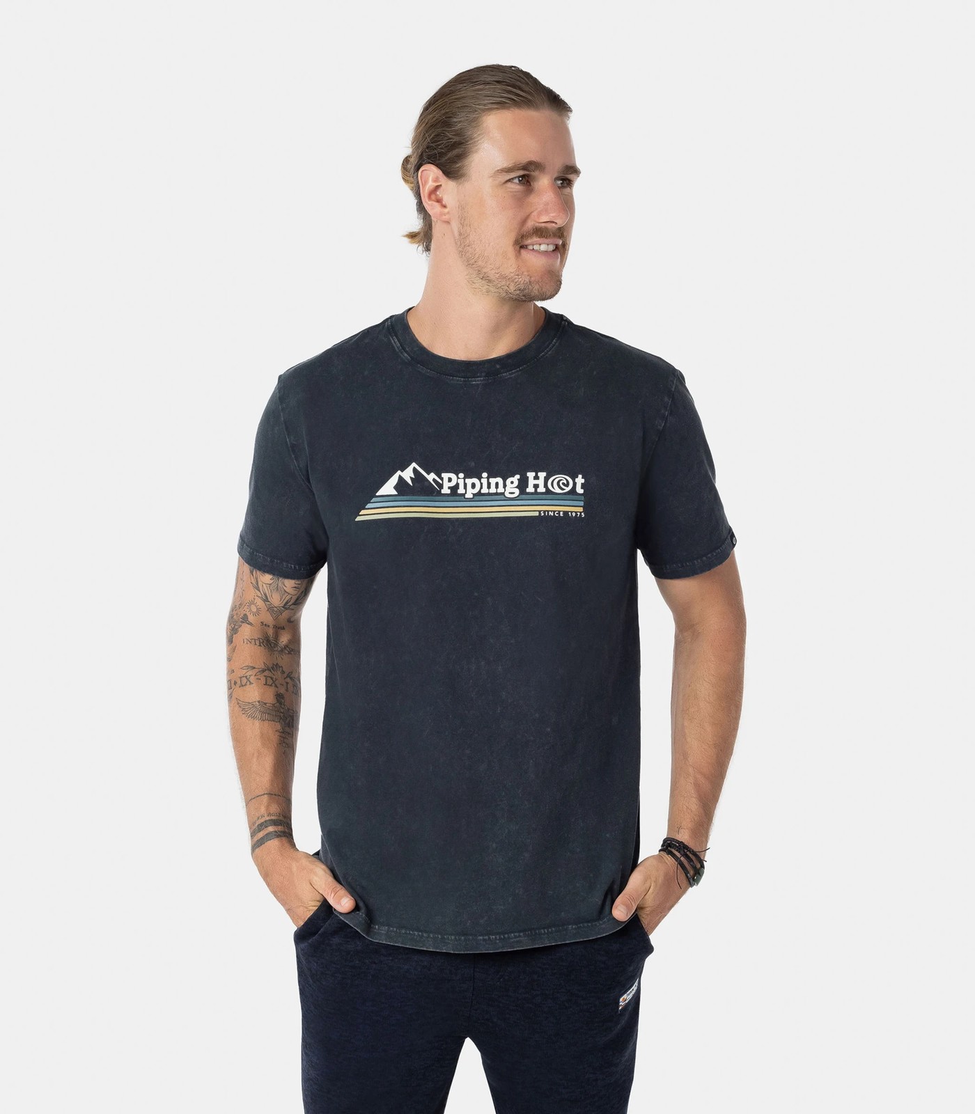 An effortless take on the classic surf tee by Piping Hot, in an easy-to-wear washed black colourway with a branded graphic on front. Made with 100% natural fibres for breathability and comfort.
