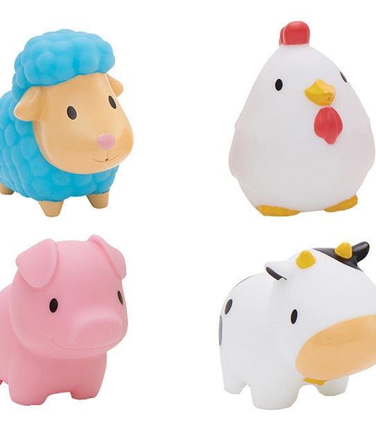 Baaaathtime with barn animals! Add these adorable barnyard animal squirts to your bathtime mix and help your baby learn to identify animal names and sounds. This pack of 4 fun animal squirts includes a chicken, sheep, cow, and pig. These brightly-colored toys float, squirt water, and are sized just right for little hands to grasp and squeeze. They’re also durable, so you don’t have to worry about chipping or breaking. Add these barn friends to your bathtime mix and watch the adventures unfold!