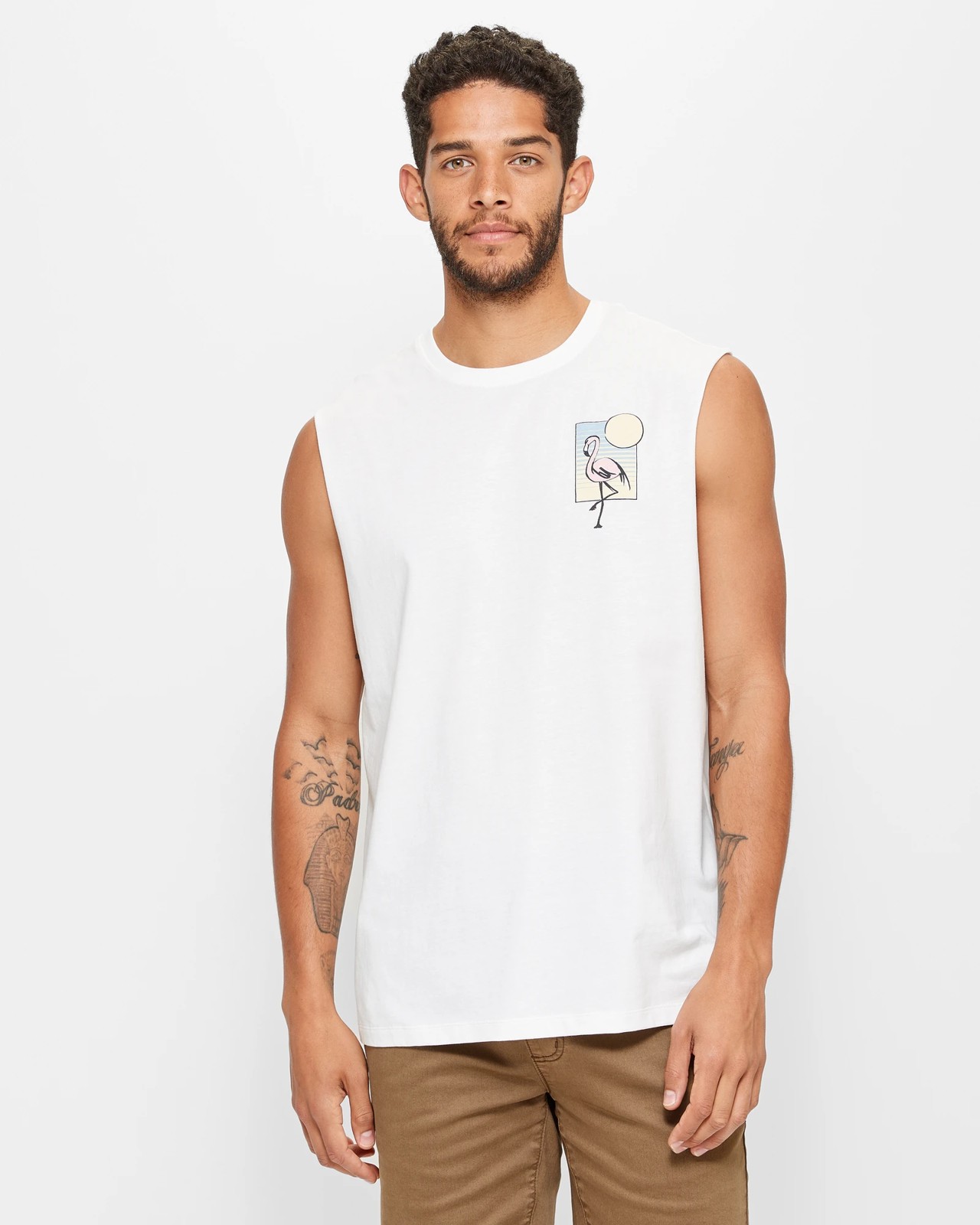 Flamingo print to chest and large flamingo print to back