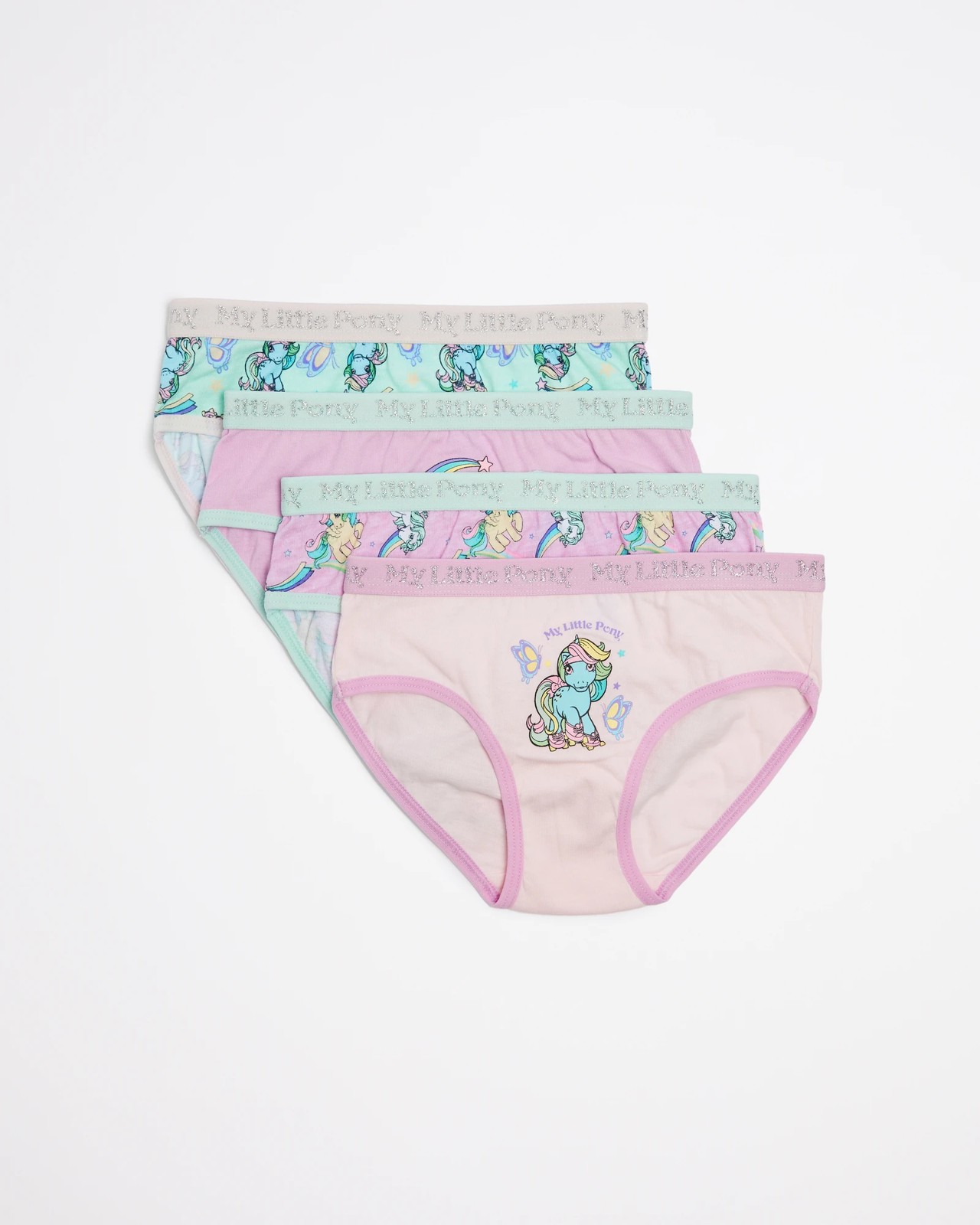 Let her unlock the power of friendship with the 4 Pack My Little Pony Briefs! These briefs are made from a cotton-rich fabric for all-day comfort, and feature an elastic waistband for a secure fit. She'll love the variety of colors and My Little Pony prints that adorn each pair. Perfect for everyday wear, these briefs provide regular coverage with a classic brief cut. Let her show off her unique style in the 4 Pack My Little Pony Briefs!