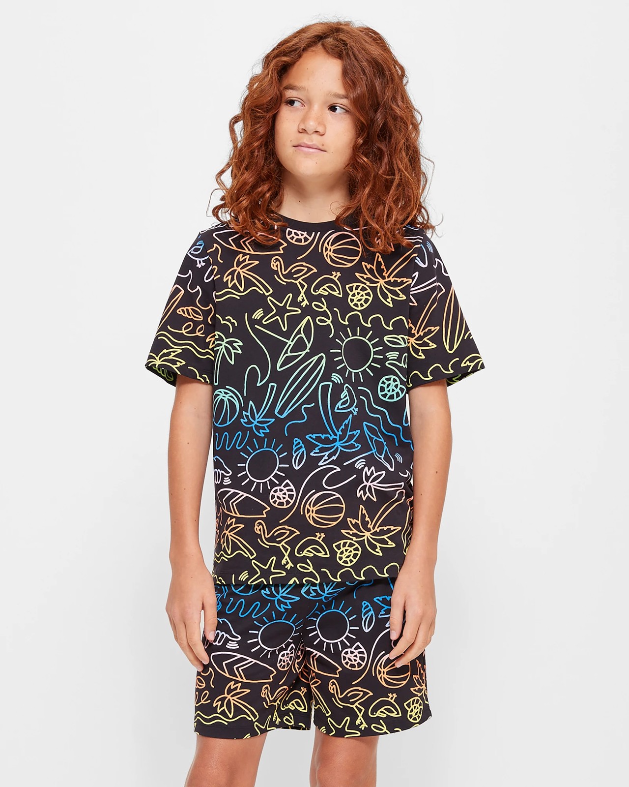 This stylish 2 piece Neon Print Cotton pyjamas are perfect for boys! Crafted from soft cotton fabric, this regular fit pyjama set features a ribbed crew neck top with short sleeves and a straight hem. The black all over neon print gives it an eye-catching finish. The matching shorts have an elastic waistband for the perfect fit. Get the perfect night's sleep in this must-have pyjama set!