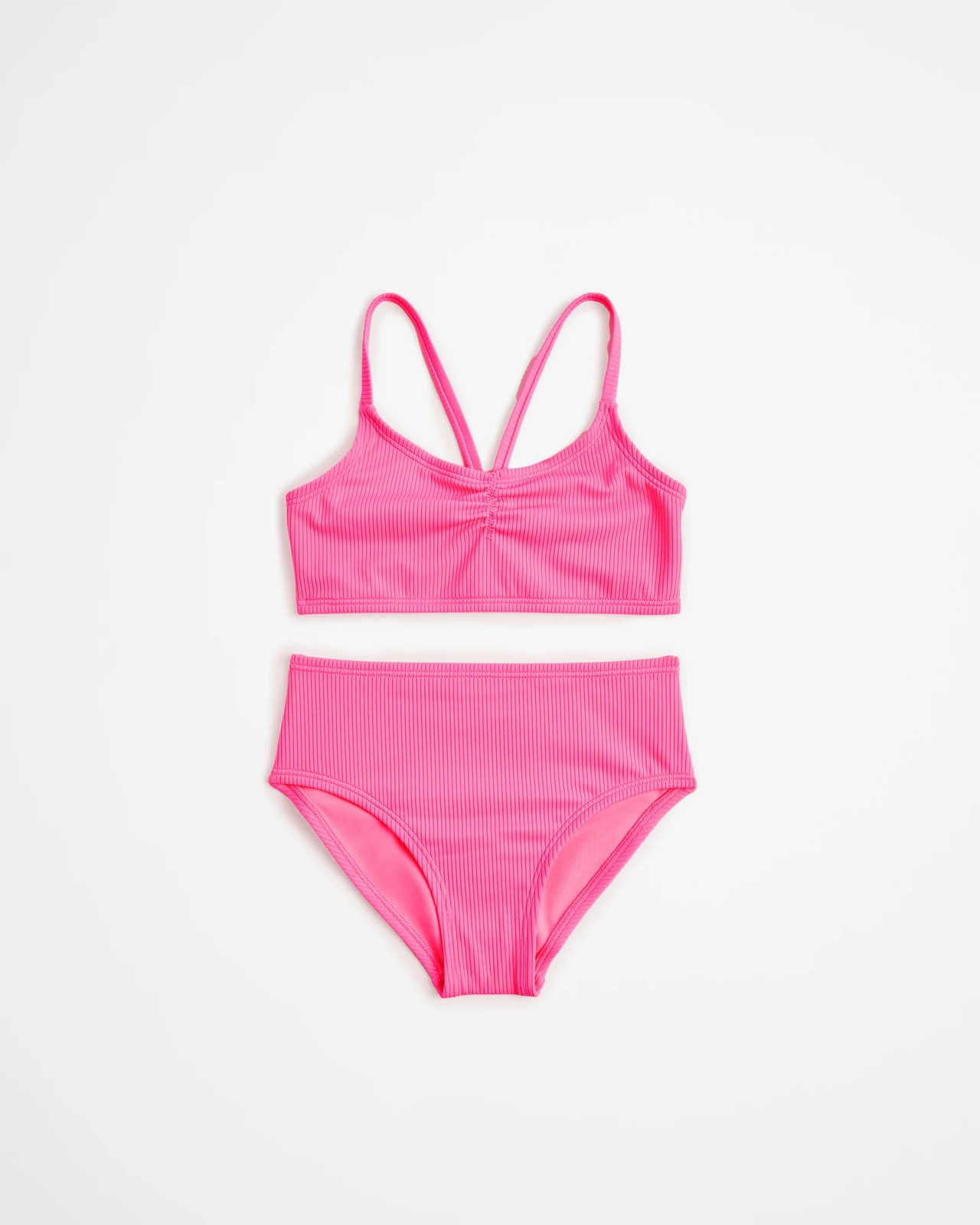This stylish two-piece Neon Rib Swim Bikini Set by is a must-have for any girl's summer wardrobe. Crafted from nylon rib, it offers a regular fit and features spaghetti straps, ruched front detailing, and a bow applique at the back. Fully lined for extra comfort, this set is sure to be her summer favourite at the beach or pools!