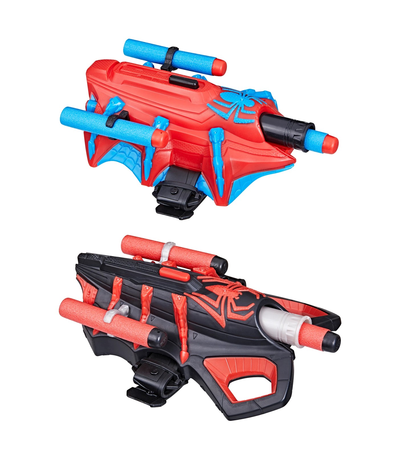Equipped with the power of NERF, this web blaster comes with 3 NERF darts for hours of action-packed playtime. The blaster features a sleek design inspired by the beloved Marvel universe and includes 2 c-clips on either side for convenient dart storage. Simply load a dart in the front, press the button, and watch it blast through the air! Whether it's for holidays, special occasions, or simply celebrating milestones, this Spider-Man web blaster makes the perfect gift for boys and girls. Take the excitement to the next level by exploring our wide range of Spider-Man role play toys, action figures, and playsets (each sold separately, subject to availability).
