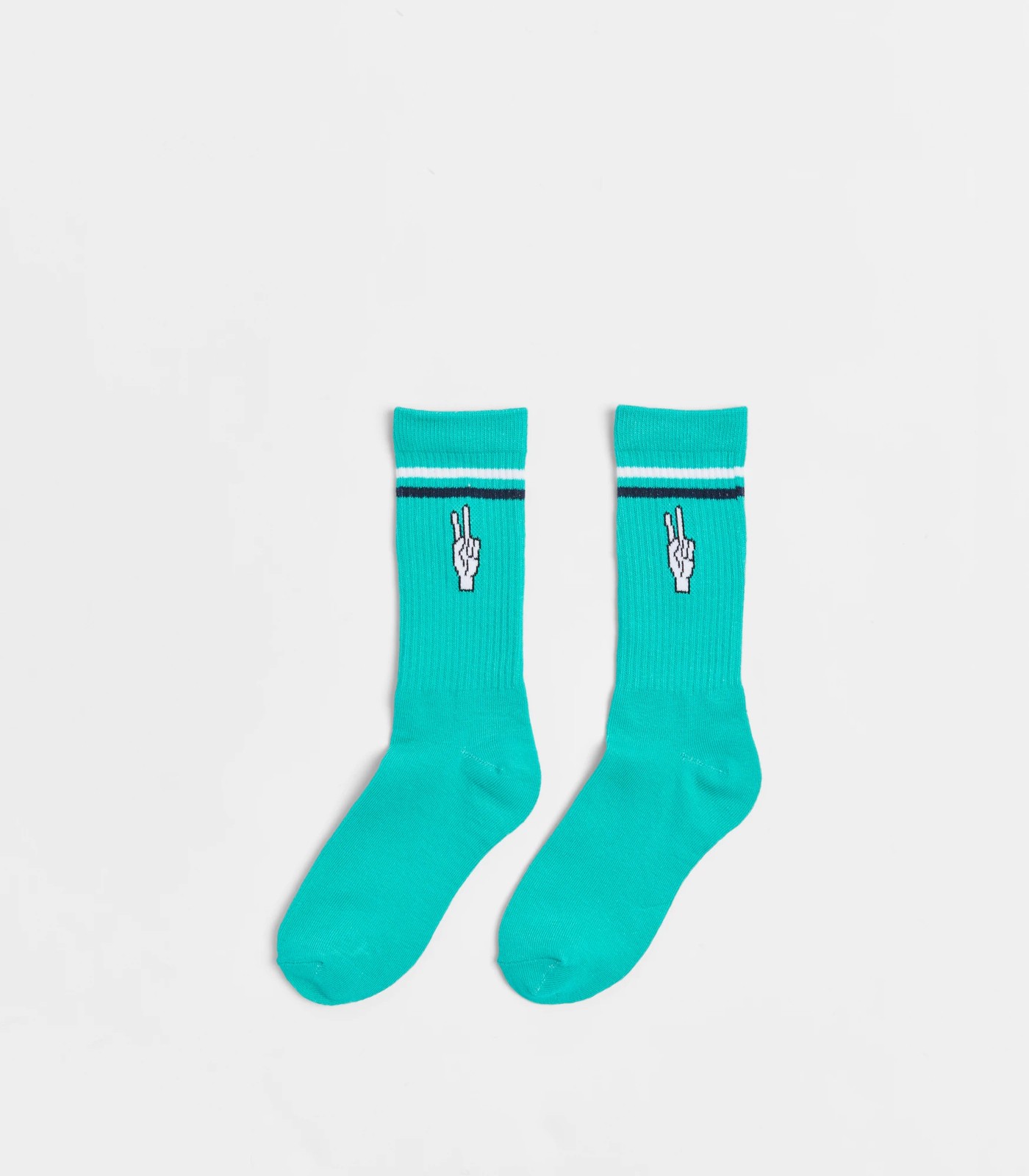 Novelty Kids Ribbed Crew Socks 1 Pack - Green Peace Hand