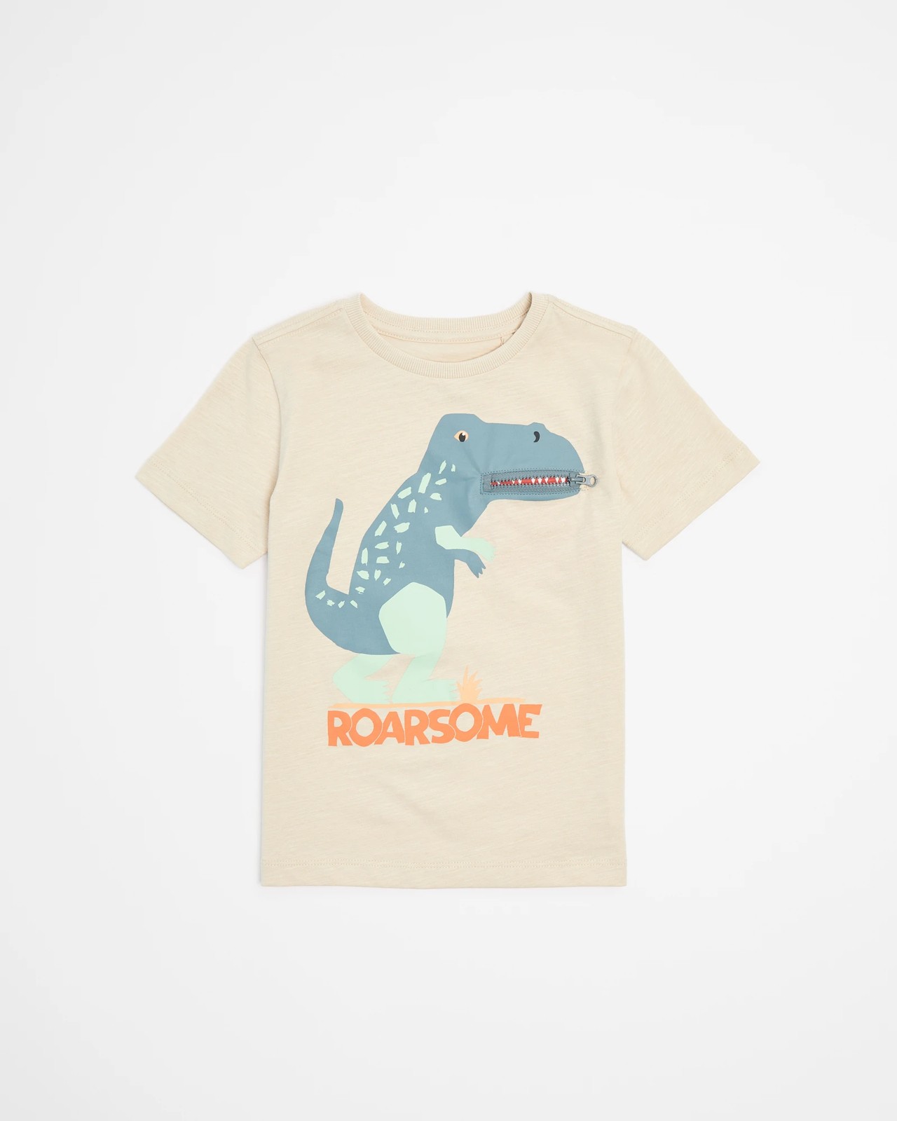 Introducing the ultimate must-have for any boys wardrobe, the Novelty Roarsome Zip T-shirt! Crafted from a cotton-rich fabric, this T-shirt features a regular fit with a ribbed crew neck, short sleeves and a large dinosaur roarsome print to the chest. Complete with a novelty zip chest pocket and straight hem, this T-shirt is sure to be their go-to for all occasions. Perfect for pairing with jeans or shorts for an easy everyday look!