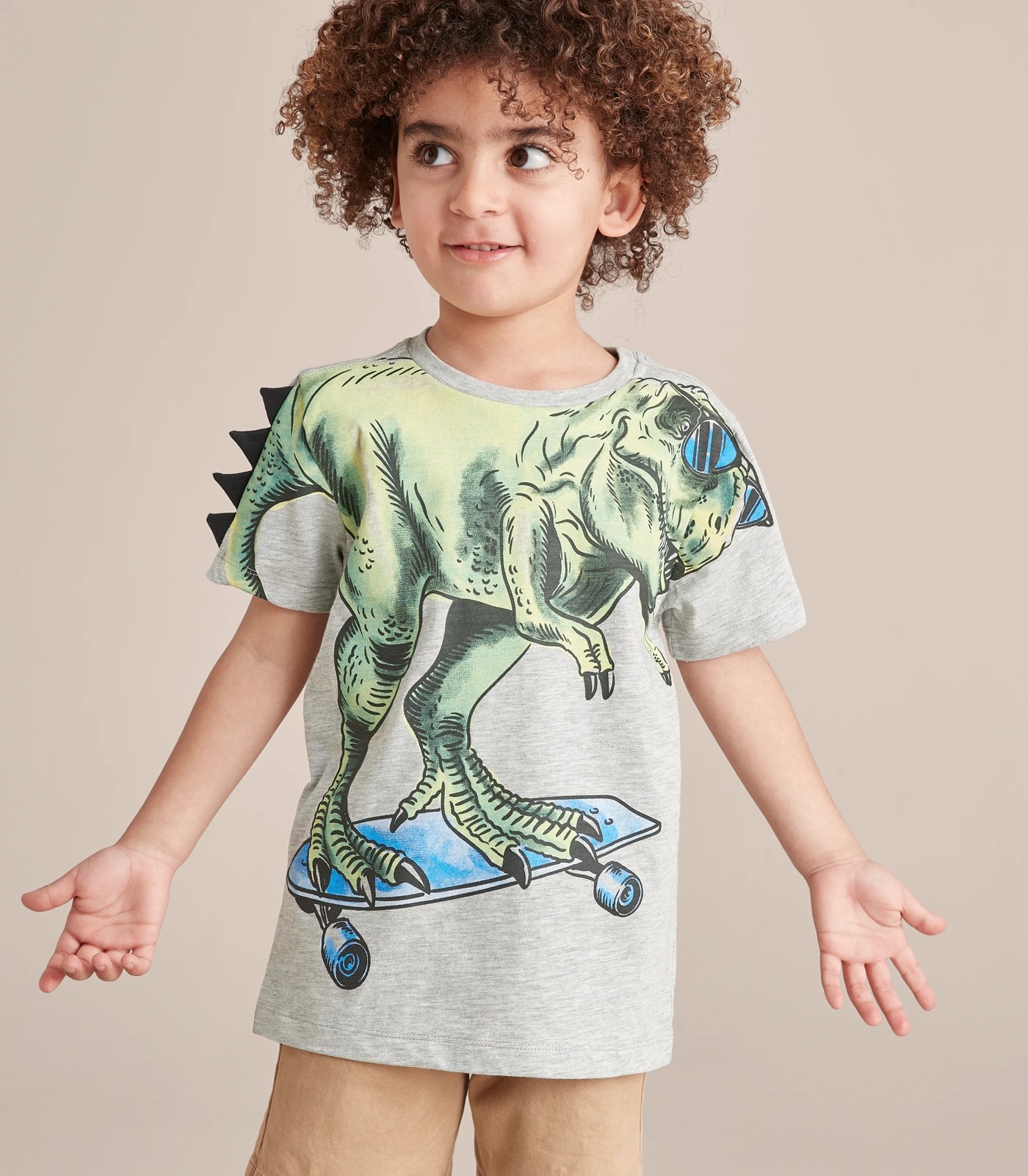 Skating dinosaur print to chest with 3D novelty spikes to sleeve
