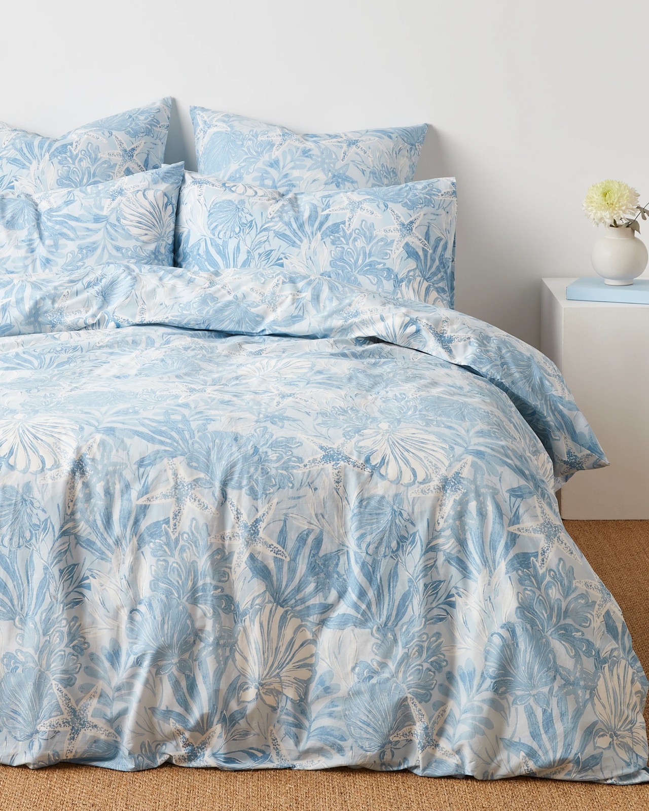 Turn your bedroom into a coastal haven with the Oceania Cotton Printed Quilt Cover Set. Made from soft cotton with a 250 thread count, this quilt cover provides a sofy and cosy rest. The stunning Oceania print brings a touch of the seaside to your decor. Easy to care for with its machine washable feature, you can also complete the look with the matching Oceania Cotton Printed European Pillowcase, sold separately. Upgrade your bedroom style and comfort today!