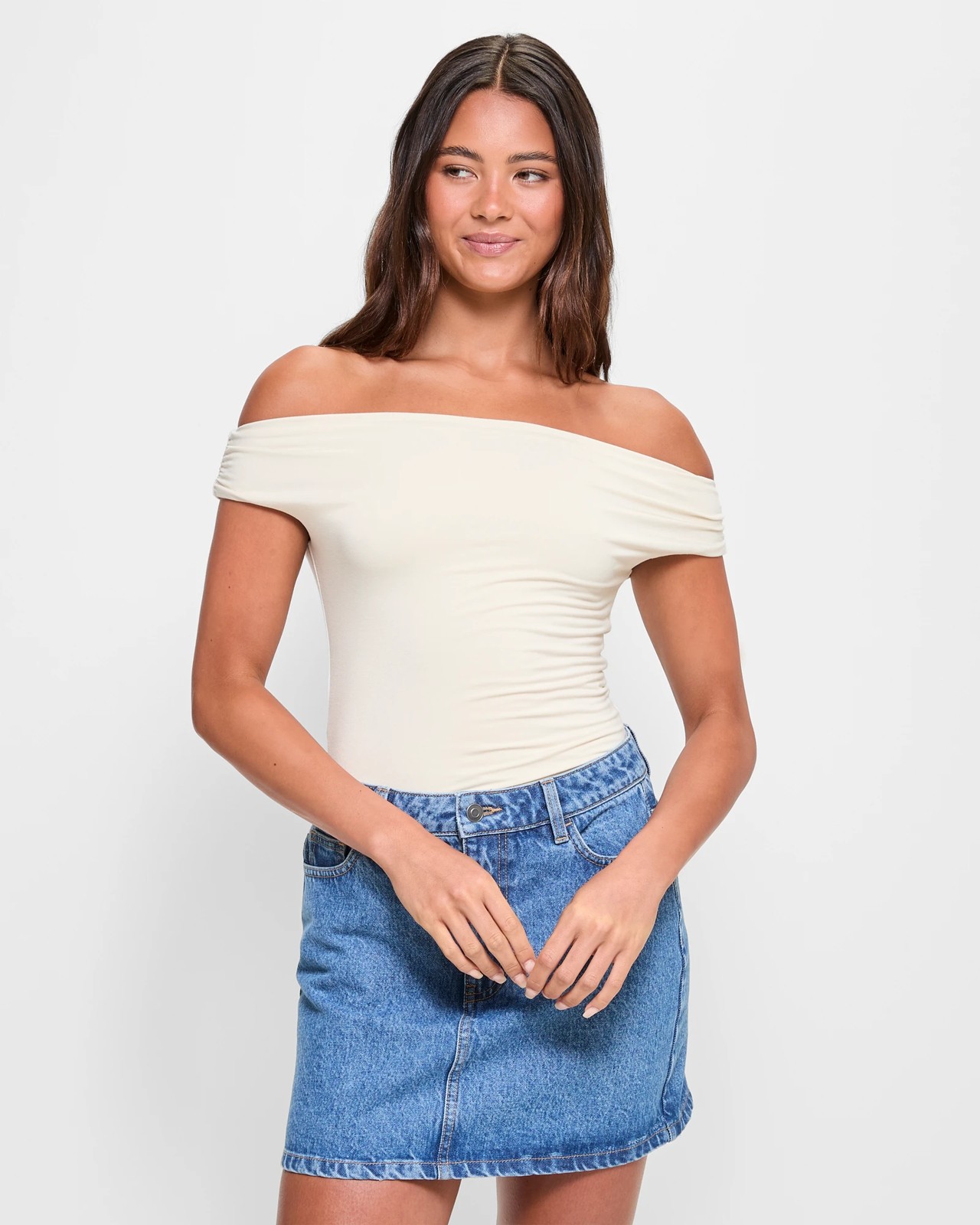 Experience the chic style of the Lily Loves Off The Shoulder T-Shirt. Made from a viscose-rich fabric with added elastane, it offers a comfortable stretch and a soft feel. This top's off-the-shoulder, sleeveless design, combined with a regular fit and straight hemline, makes it a versatile addition to any wardrobe. Whether dressing up or down, this piece is perfect for any occasion. Add this stylish tee to your collection now!