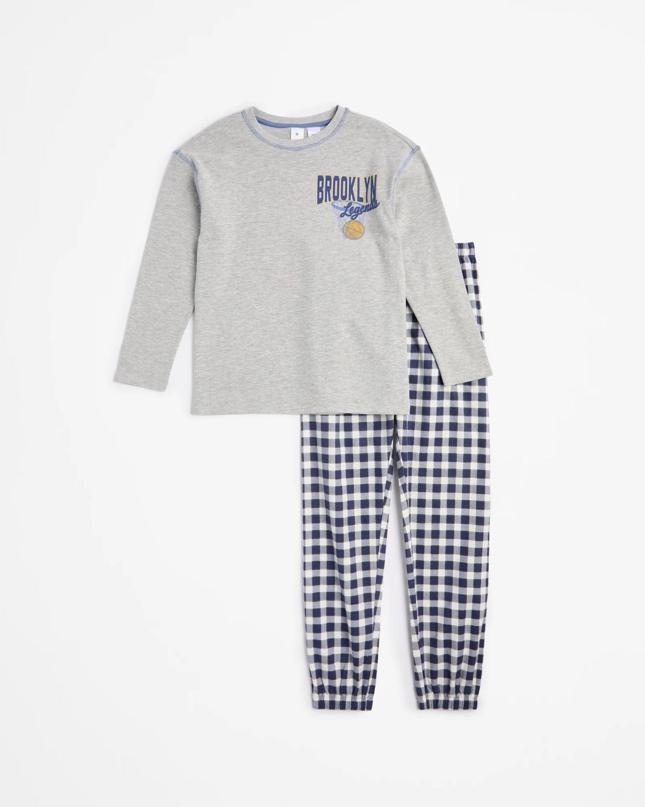 Older Boys Cotton Long Sleeve Waffle Flannelette Pyjamas - Grey Marle Brooklyn Legends