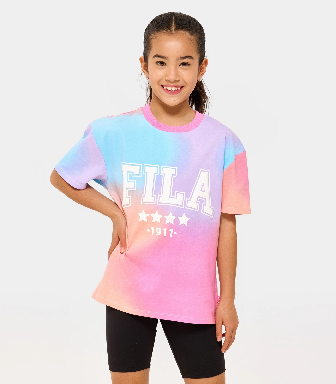 Freshen up her easy going style with this Lilah ombre tee from Fila. Made from Cotton Jersey for comfy all-day wear, this Girl's short-sleeve tee is sure to become a fast fave for relaxed and laid-back days. Featuring a Fila puff print to the centre front chest and an all over vibrant ombre print.