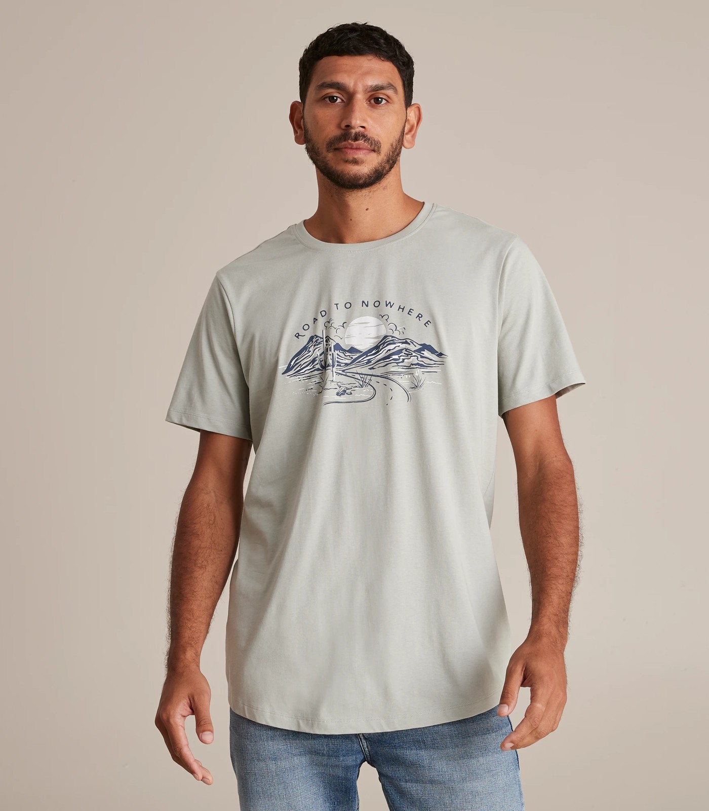 The Open Road Print T-Shirt is a comfortable, casual choice for everyday styling. Available in a cement grey colour, this mens tee features a crew neckline and road to nowhere chest print.