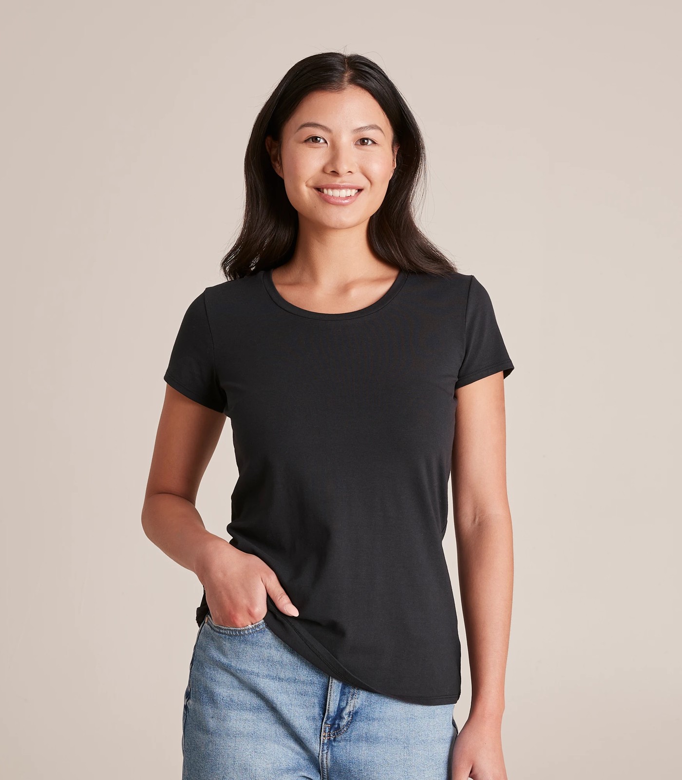 The perfect everyday wardrobe basic! Super comfy, our Organic casual t-shirt is crafted in a soft organic cotton stretch, is great for layering and has cap sleeves.