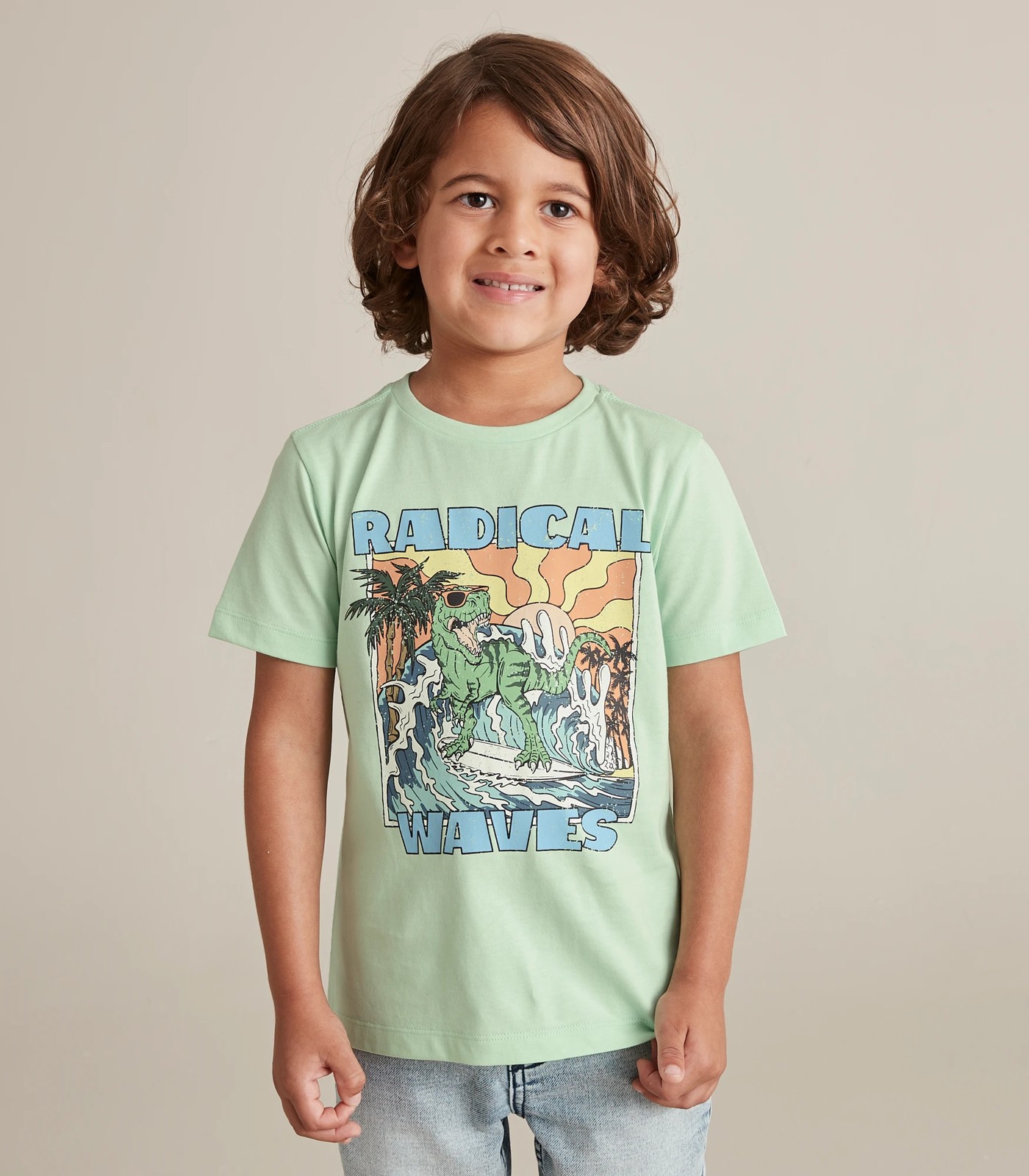 Boost his wardrobe with this cool and comfortable Organic Cotton Dinosaur Graphic T-shirt. Crafted from 100% organic cotton, this regular fit t-shirt features a classic crew neck, short sleeves and a straight hemline. This T-shirt is finished with a large dinosaur graphic print to the chest that will make him stand out from the crowd. It's perfect for everyday wear!