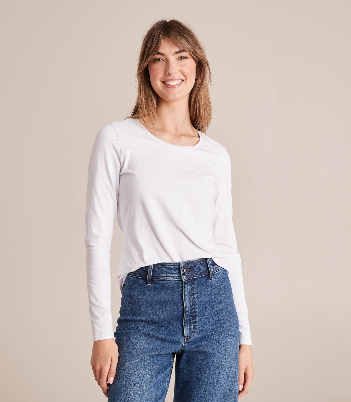 The organic cotton long sleeve crew neck top is the perfect wintery top for layering or wearing alone. It features a flattering crew neckline, long sleeves for warmth and longer length for coverage. It is available in multiple colours and is made with organic cotton.