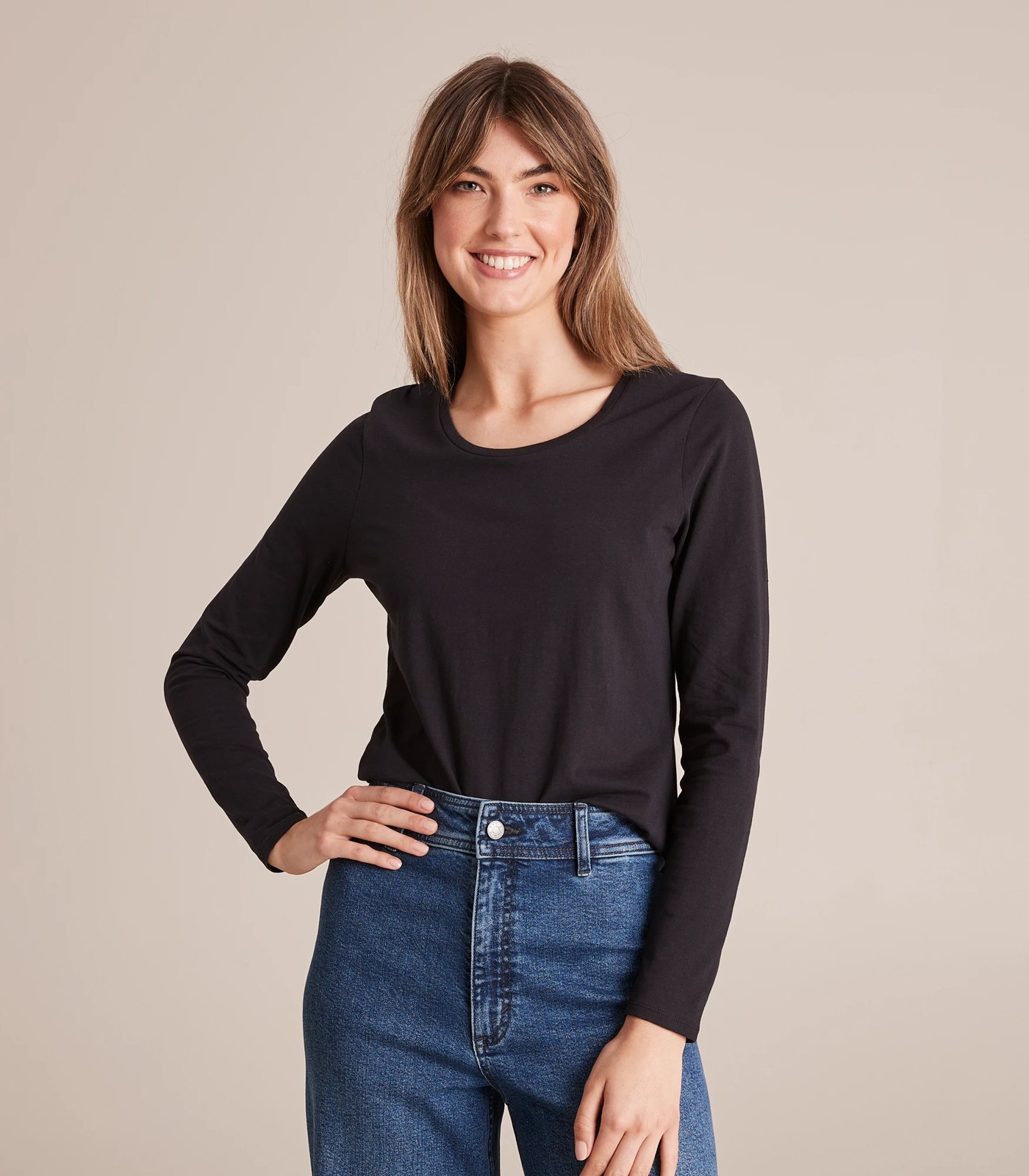The organic cotton long sleeve crew neck top is the perfect wintery top for layering or wearing alone. It features a flattering crew neckline, long sleeves for warmth and longer length for coverage. It is available in multiple colours.