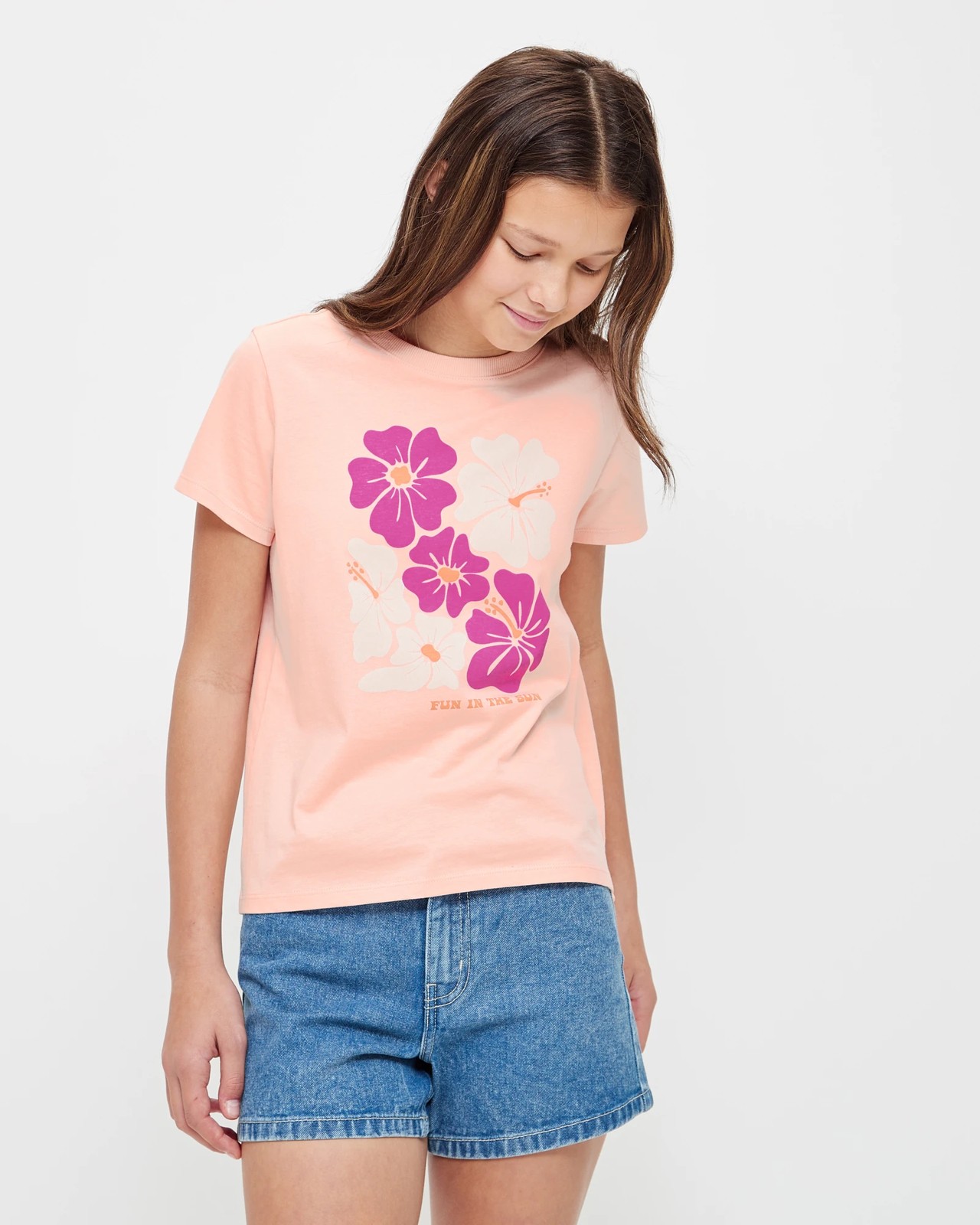 This stylish t-shirt is perfect for all the fashion-forward girls out there! Crafted from organic cotton, this regular fit tee features a ribbed crew neck and short sleeves. The look is finished with a large print to the chest and a straight hem. Wear it with everything from jeans to skirts for an effortlessly cool look.
