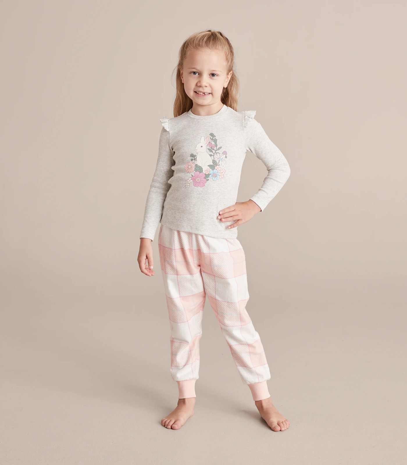 Matching pink flannelette checkered pants
