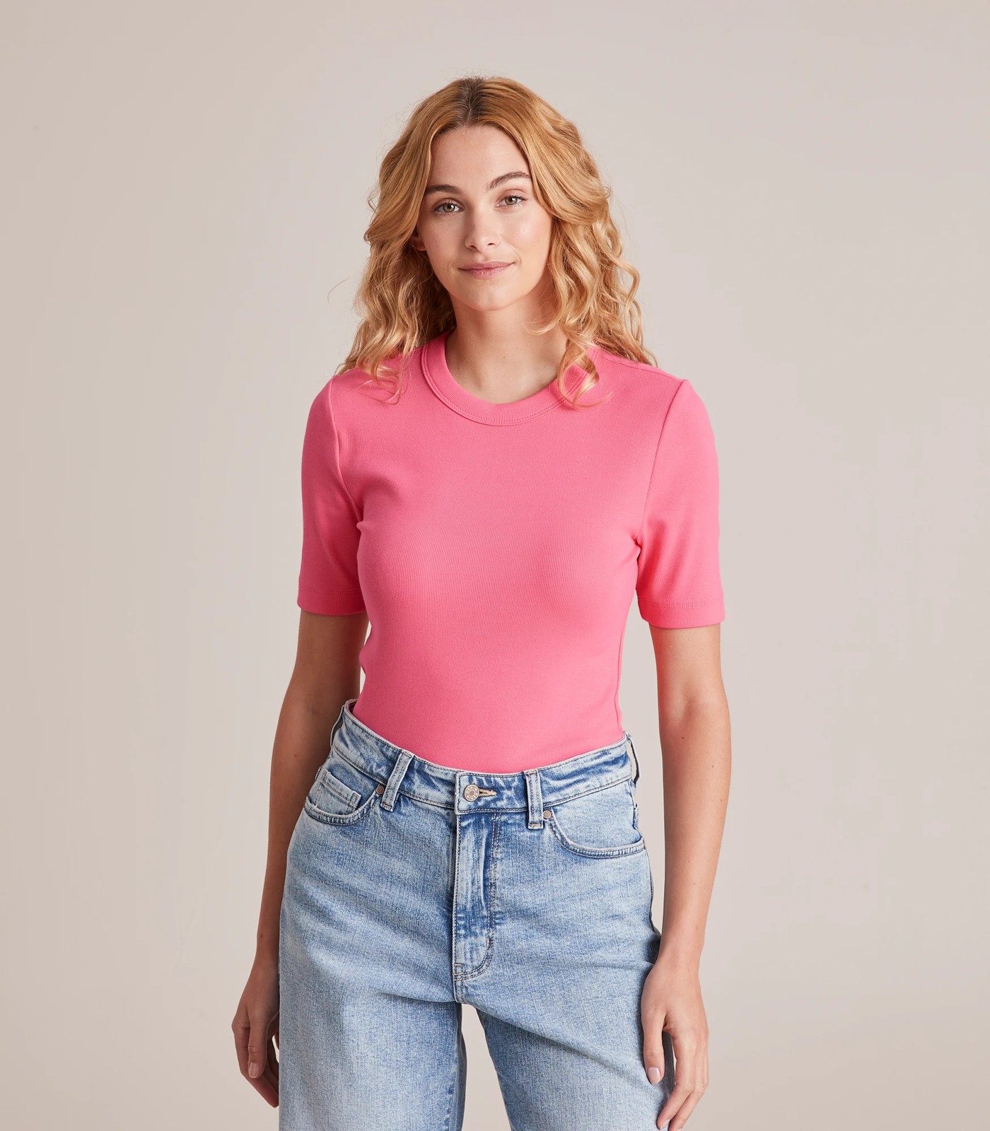 Great for everyday wear, the organic cotton rib layer tee features a slim fit, all over ribbed design and short sleeves