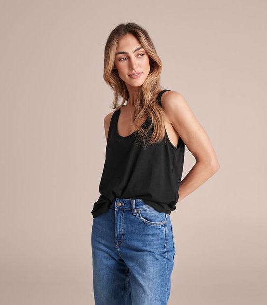 Perfect for everyday wear and matches back great with your favourite bottoms, the organic cotton slub tank top has a scoop neckline, sleeveless, is soft to the touch and has a curved hemline to flatter your figure.