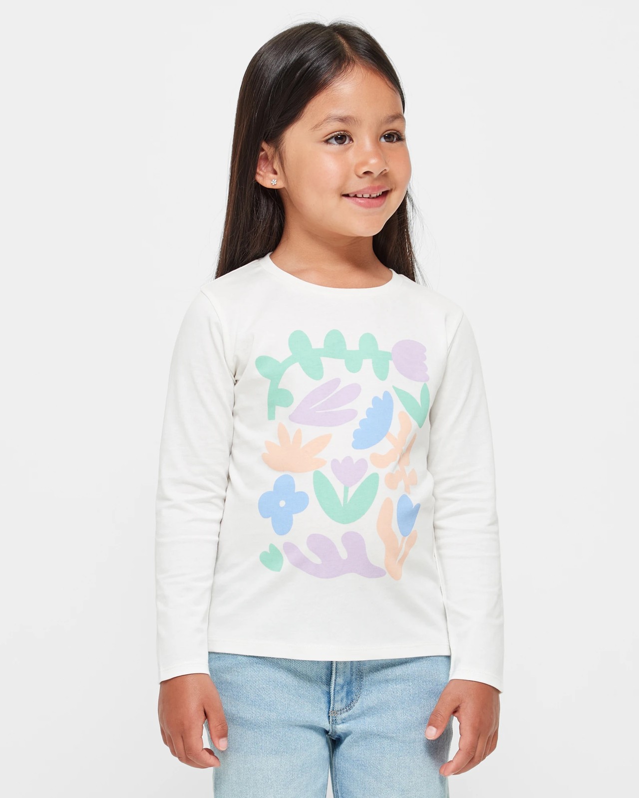 Introducing our Organic Cotton Top, the perfect addition to any girl's wardrobe. Made from 100% organic cotton, this top is not only comfortable but also environmentally friendly. Designed with a regular fit and a ribbed crew neck, it provides a stylish and comfortable wear. The large print on the front adds a pop of colour and fun to any outfit. With its long sleeves and straight hem, this top can be easily paired with jeans or leggings for a versatile and trendy look. Upgrade your little one's style with our Organic Cotton Top today!