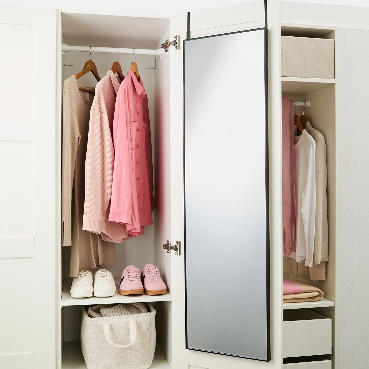 Transform the way you get ready each day with this sleek over the door mirror. Its slim, black frame brings a touch of contemporary style to your room while offering the convenience of a full-length reflexion wherever you need it. Simply hang it on the back of any door and maximise your space without the need for drilling or bulky fixtures. Whether you are catching a final glimpse before heading out or creating a more open, bright feel in your area, this mirror is the perfect addition. Give your home a quick update and enjoy the ease of checking your look in seconds. Treat yourself to this practical essential today and see the difference it makes to your daily routine.