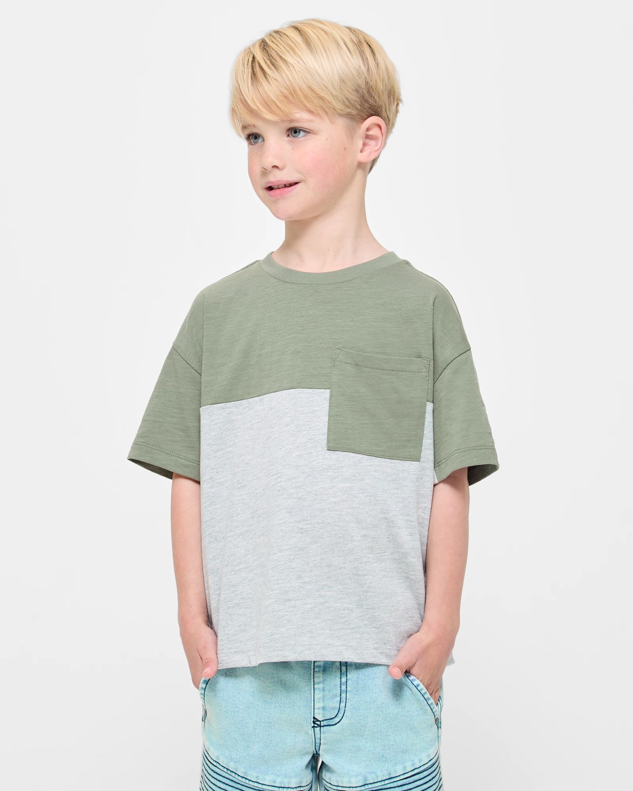 Experience unmatched comfort with our Oversize Spliced T-shirt. Made from a soft cotton blend, this T-shirt features a trendy splicing design in green and grey marle. The regular fit, crew neck, and short sleeves provide a relaxed and timeless look. The chest pocket introduces a touch of practicality. Ideal for any casual occasion, this T-shirt is a perfect addition to your wardrobe. Look your best and feel great all day long. Get yours now and enjoy the perfect blend of style and comfort.